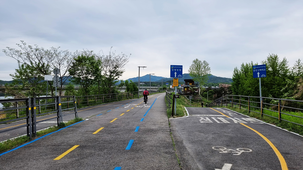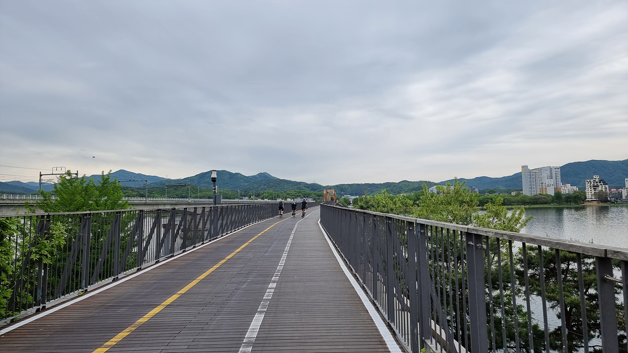 약 1km의 철교를 건너가면 자전거길은 계속해서
