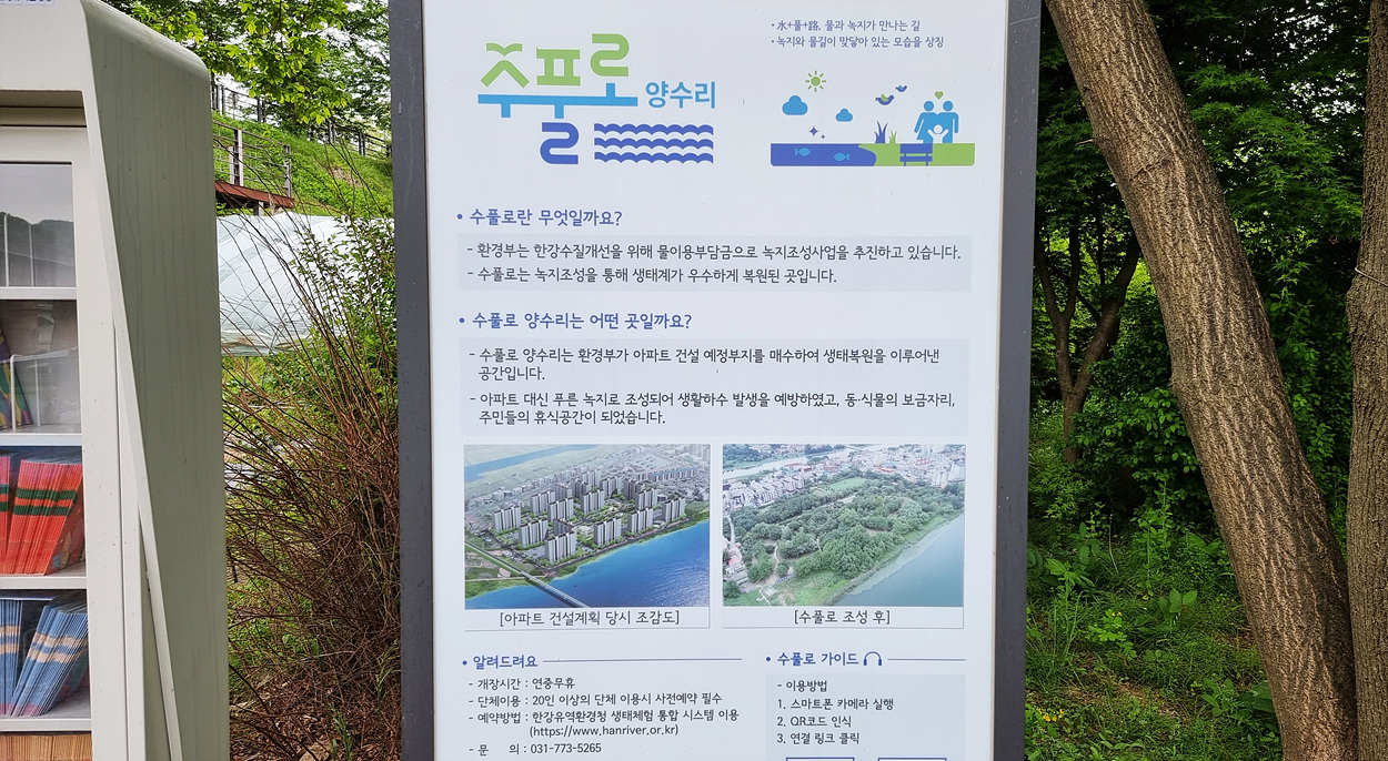 수풀로는 녹지조성을 통해 생태계가 우수하게 복원된 곳으로 수풀로 양수리는
