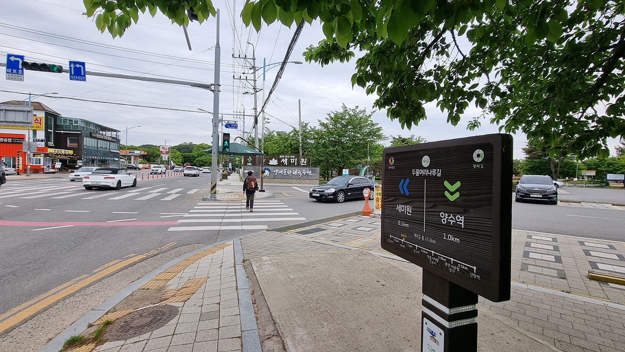 체육공원 삼거리에서 세미원 맞은편으로 건너간다