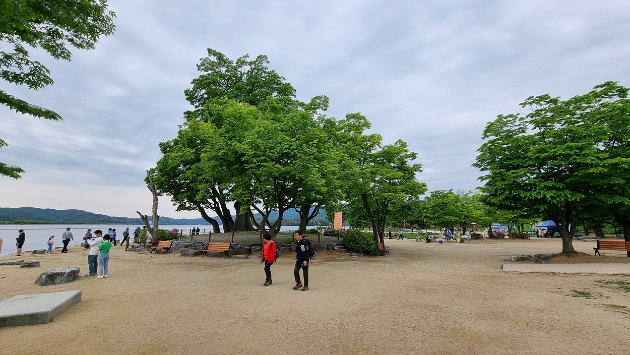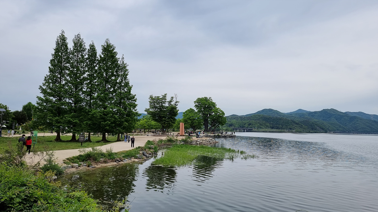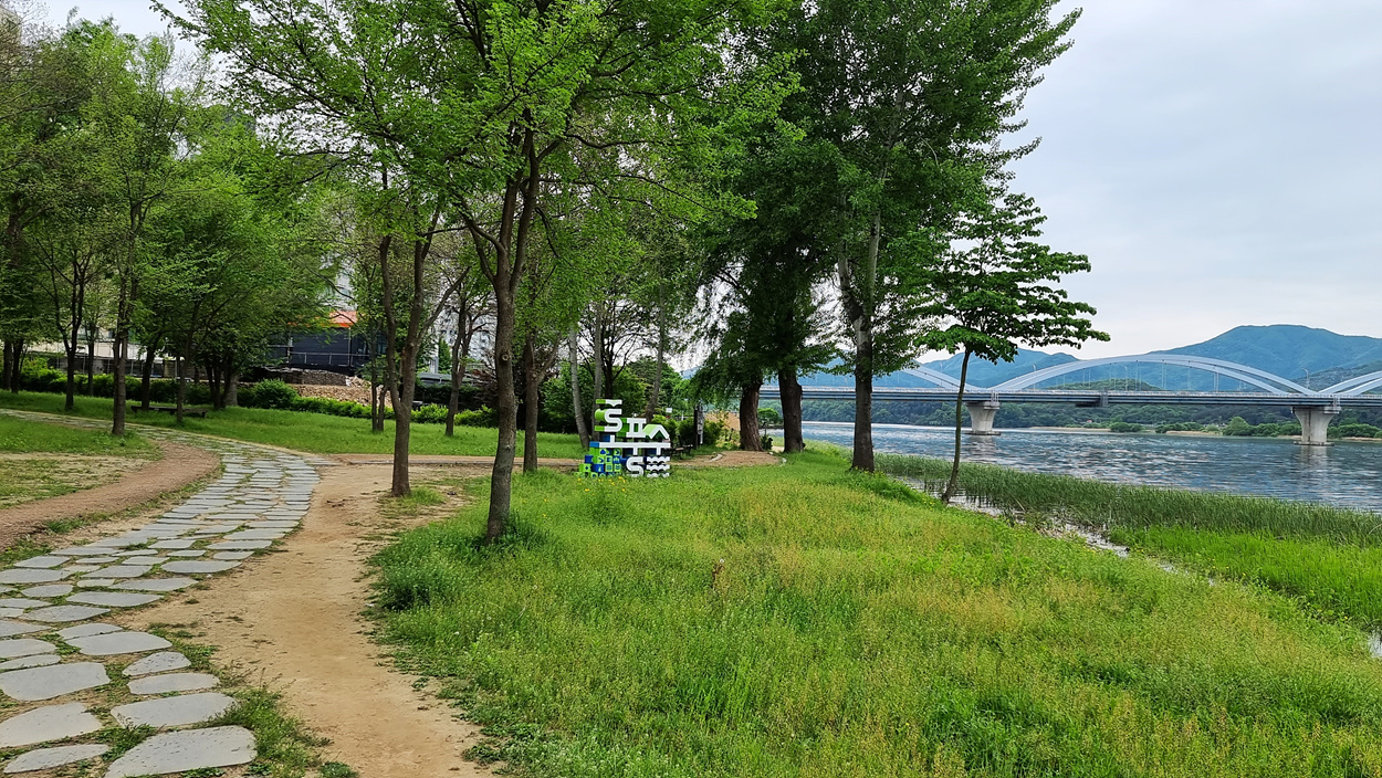 양평군 양수리일대 북한강변에는 공원도 보인다,