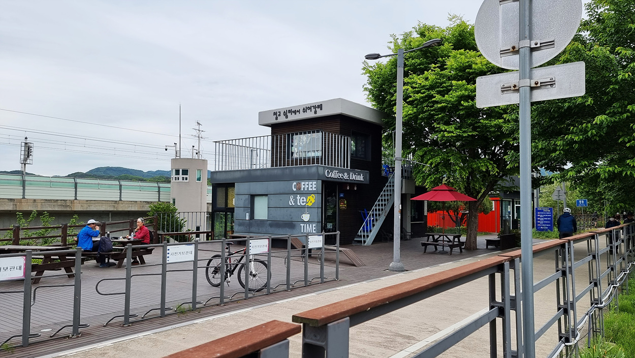 카페도 있다, 이 카페 자리는 예전 북한강 철교 남양주초소다,