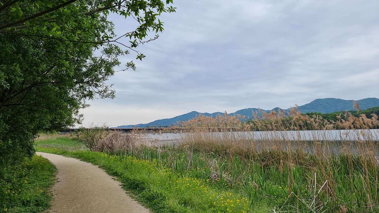 강변을따라 걷는 여유로움이 넘치는 아름다운 길이다,