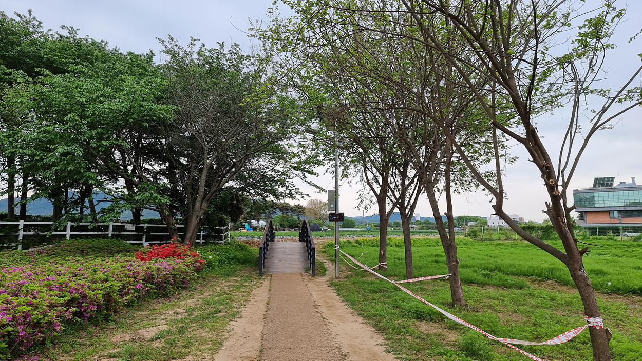 유실되였어니 이 다리 건너에 있는 세미원 정문으로 들어가야한다,