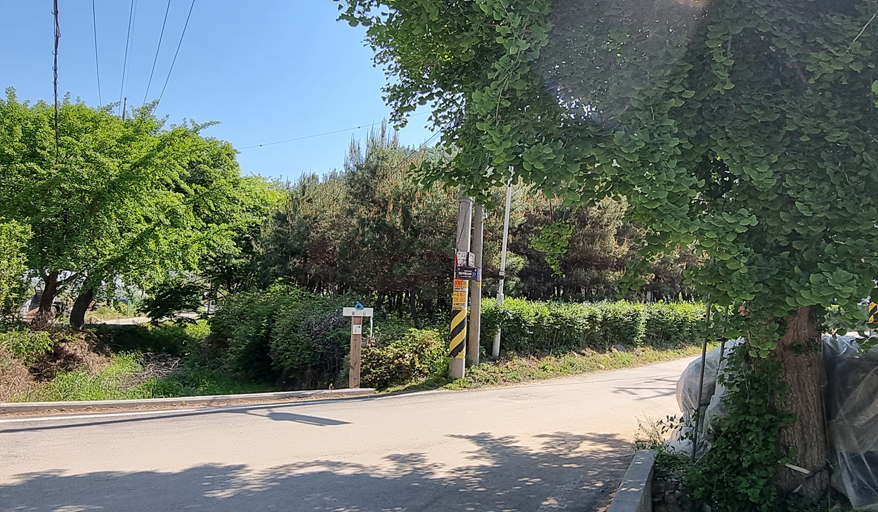 이곡마을로 들어가는 입구 삼거리에 보이는 이정표