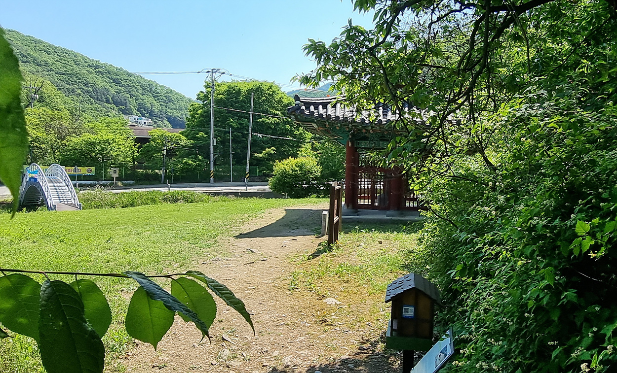 평해4길 스템프함이 있는 곳에서 가정천변 산길로 간다,