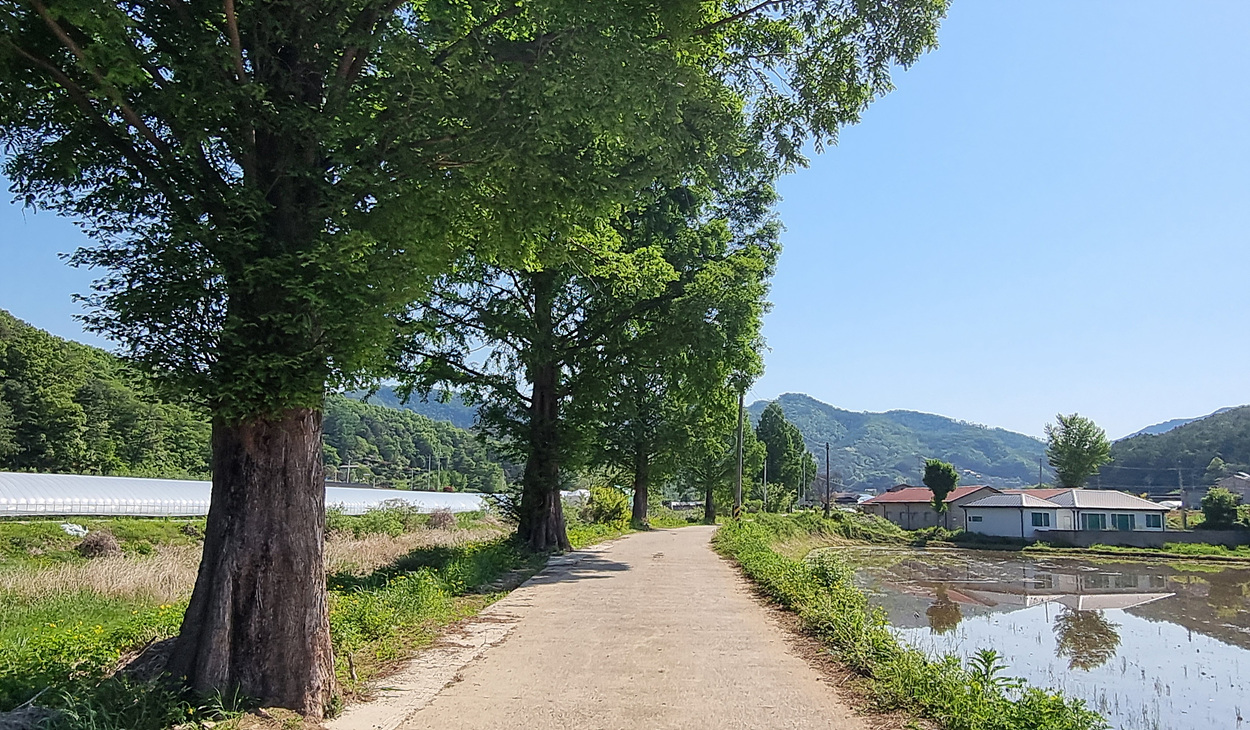 가정천 둑길에는 메타쉐콰이어 나무가 있는데