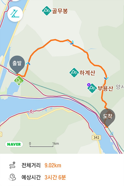 양수역까지 이어지는 산이다, 반대편에는 청계산도 있다,