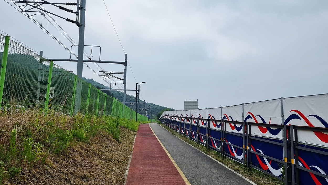 보행길은 공사중으로 갈 수없어니 자전거 전용도로를 따라 간다,