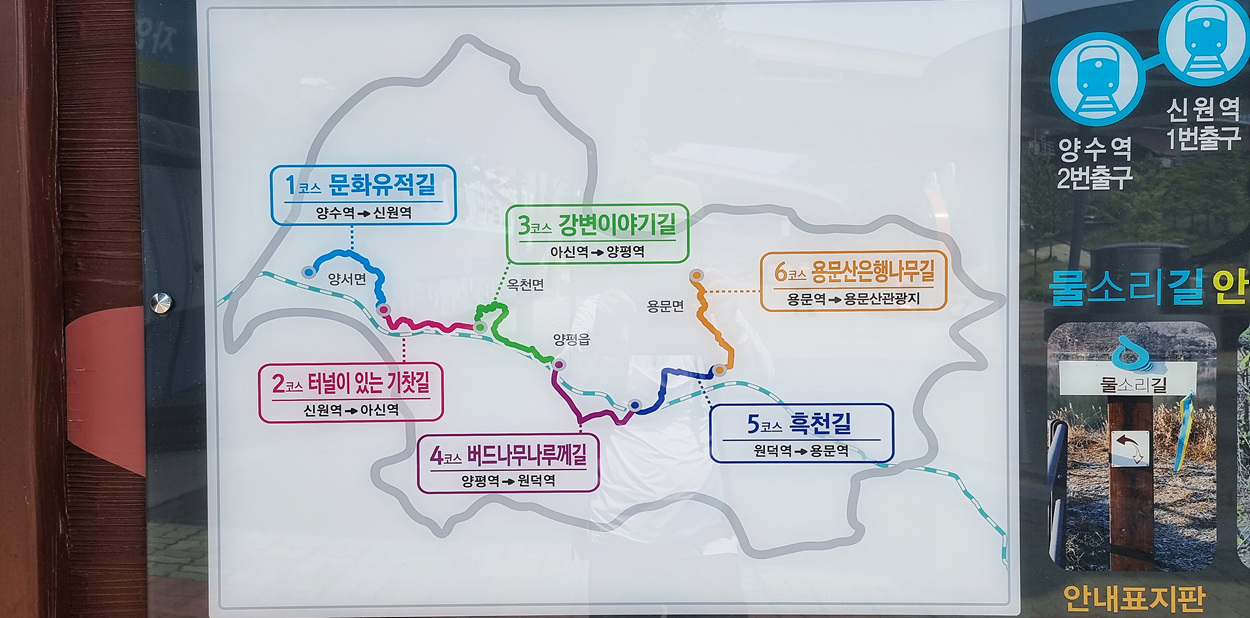 또한 신원역은 양평물소리길 2코스로 두 길은 거의 함께 겹치는 길이다,