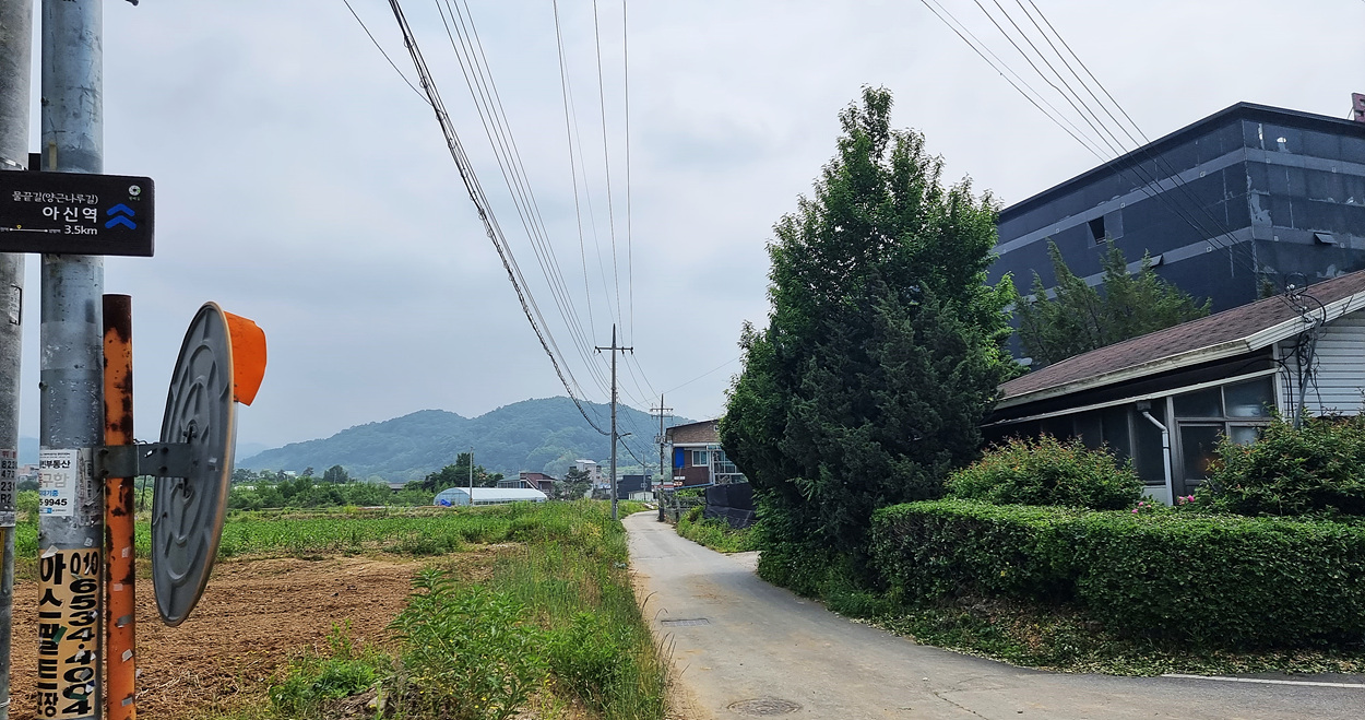 등나무터널 끝 앞에 보이는 곳은 아신역이다,
