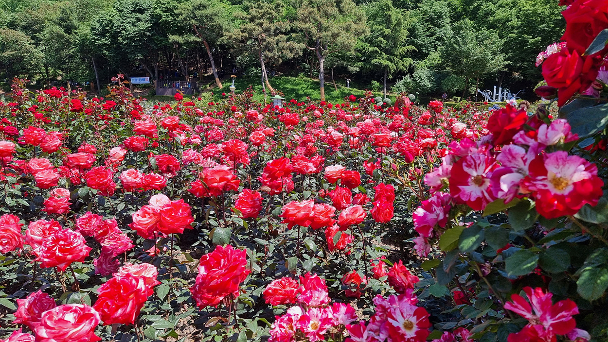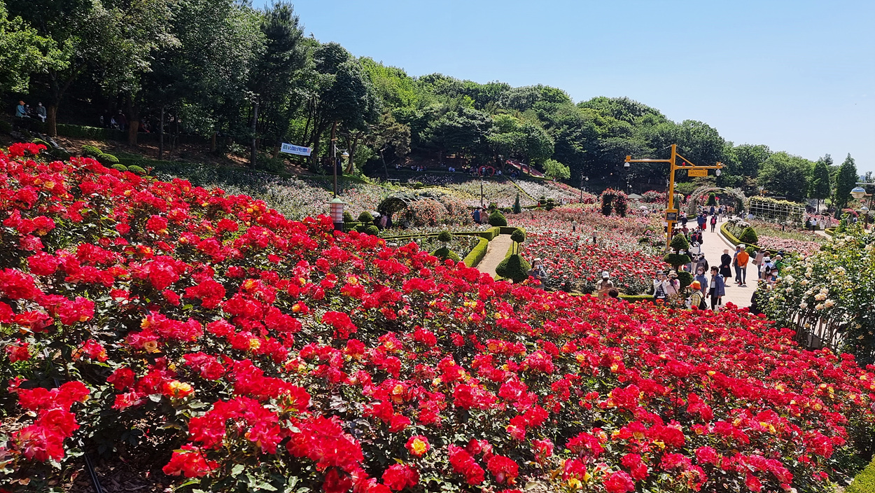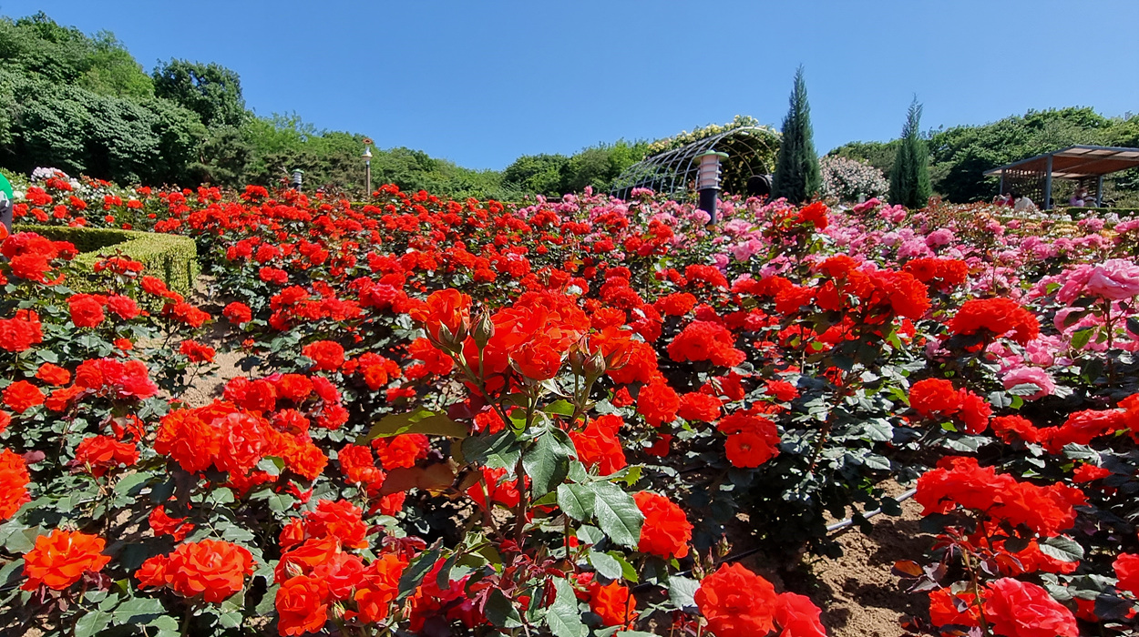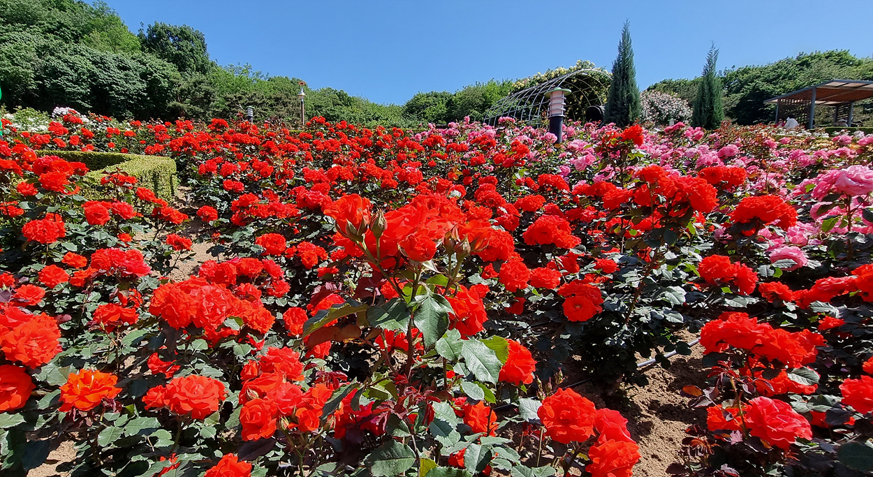 백만송이 장미원은 단일 장미공원으로는 국내 최대 규모라고 한다, 해마다 5월 하순부터