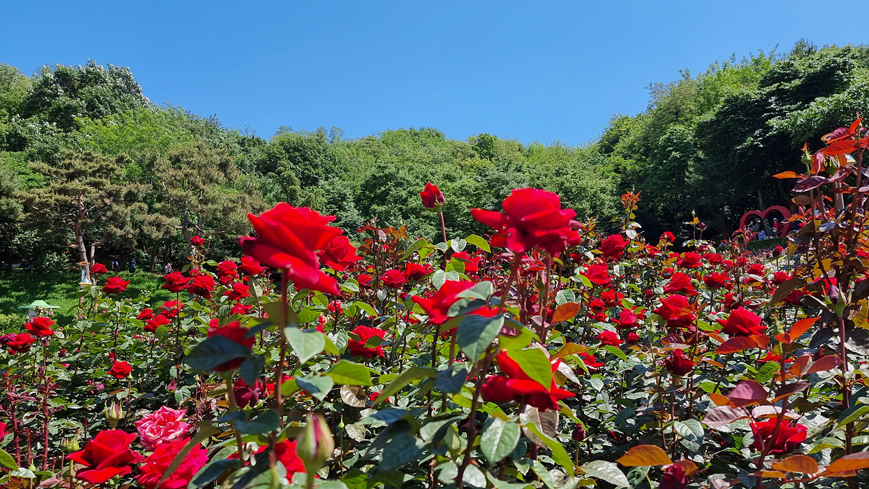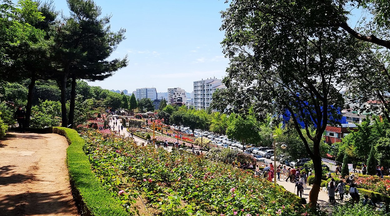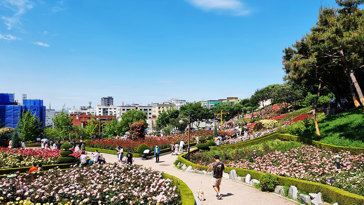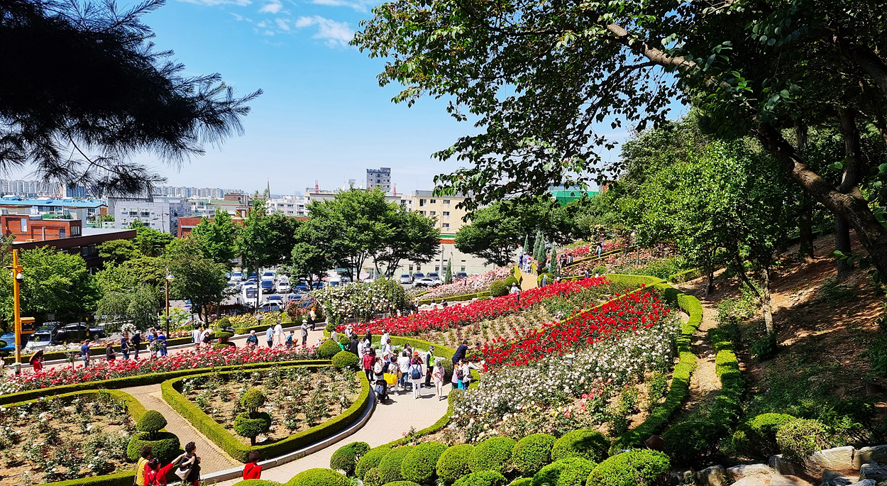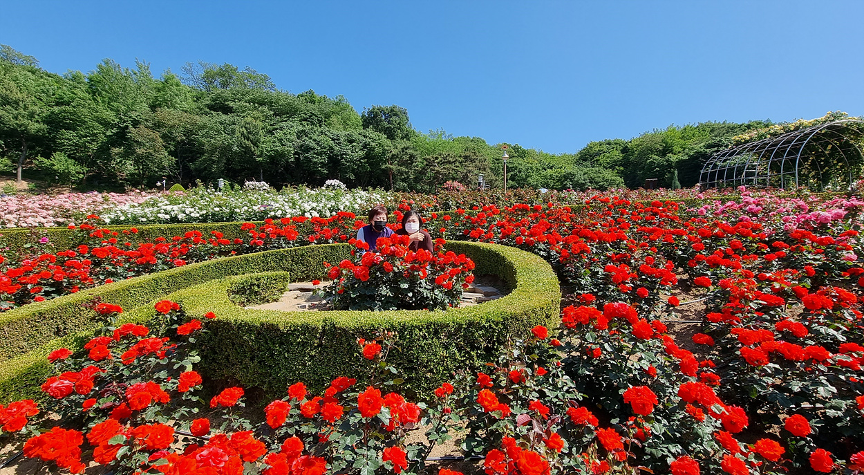 1999년에 조성된 부천 장미공원은 부천 도당산 수목원에 자리한다,