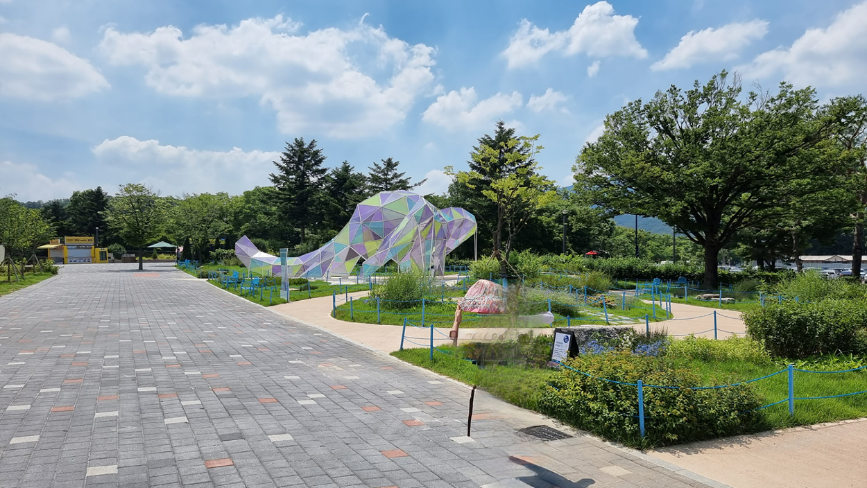 종합안내소로 들어가서 조각분수대에서 오른쪽으로 간다,
