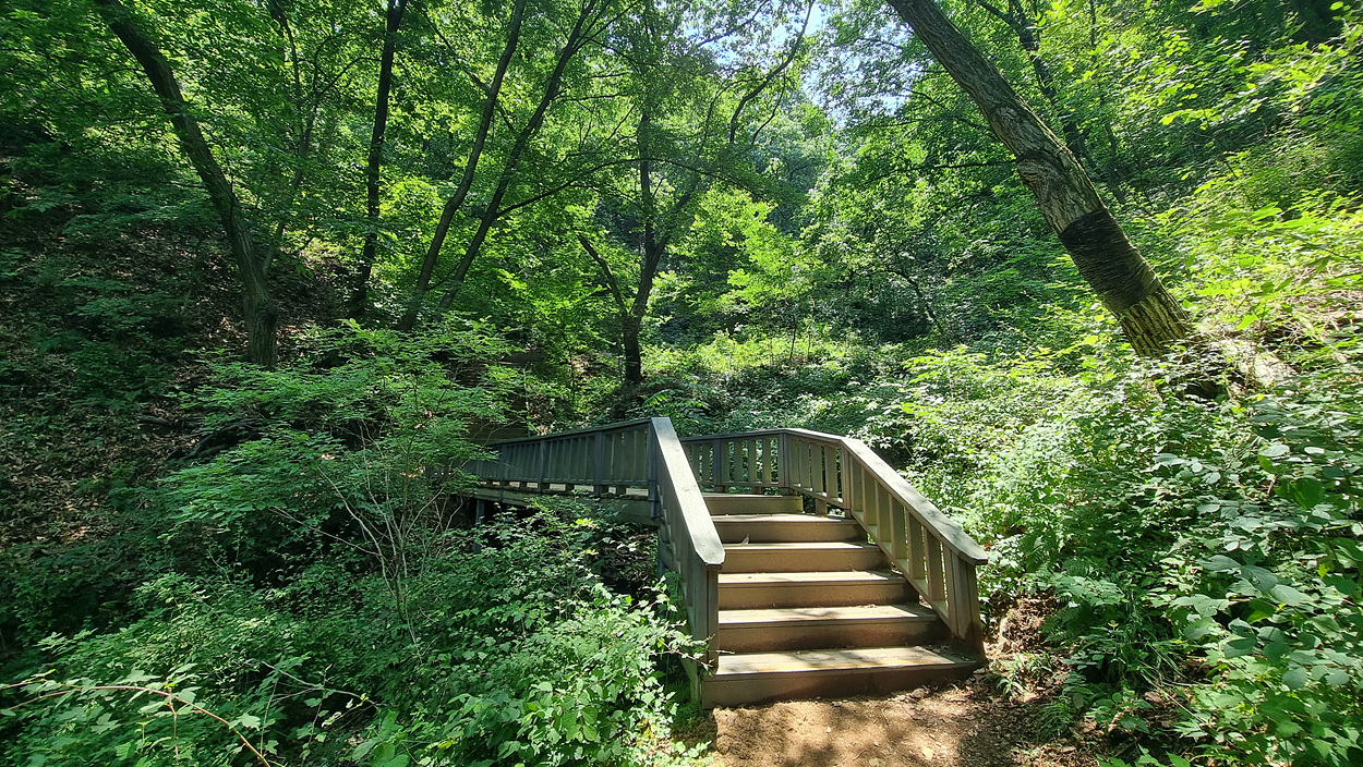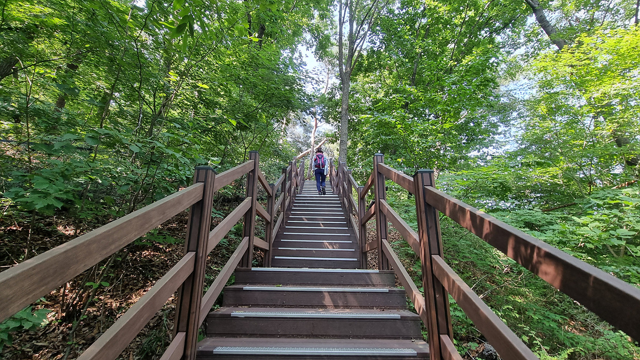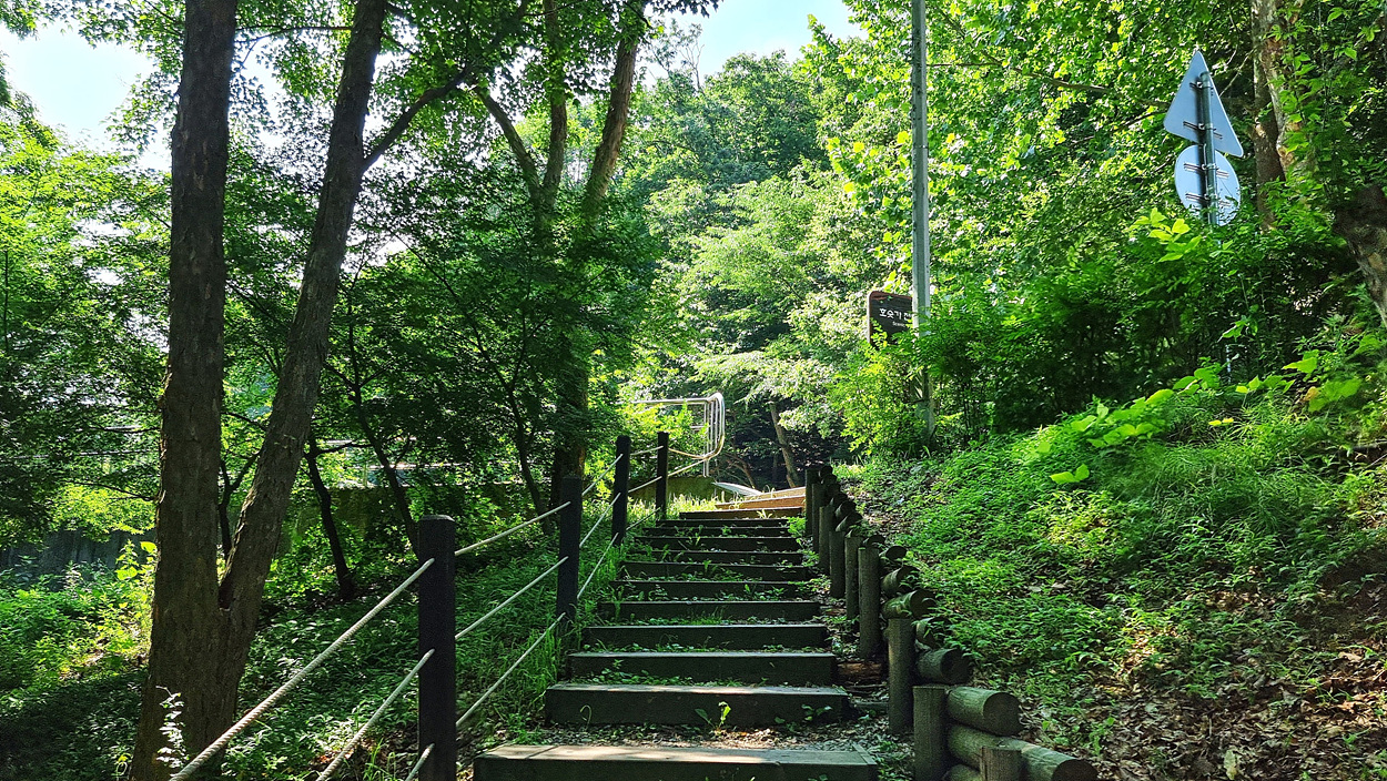 저수지 길의 끝에서 계단으로 올라가면