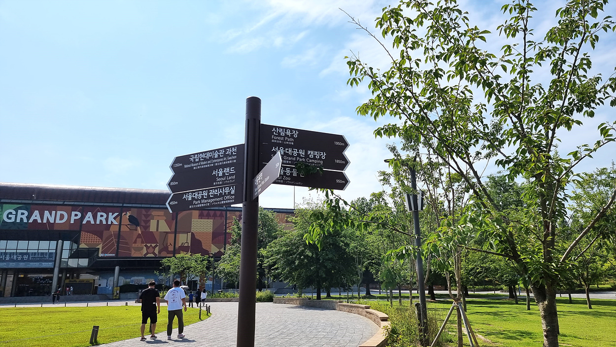 대공원 종합안내소에서 대공원역 2번 출구로 간다,