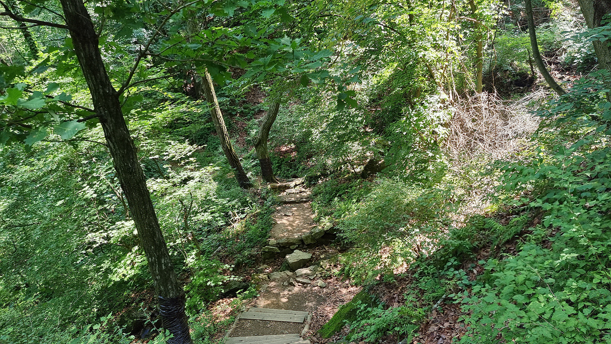 언덕으로 올라가는 계단으로 올라가면