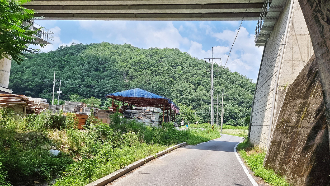 앞에는 자재를 쌓아 놓은 공터도 보인다,