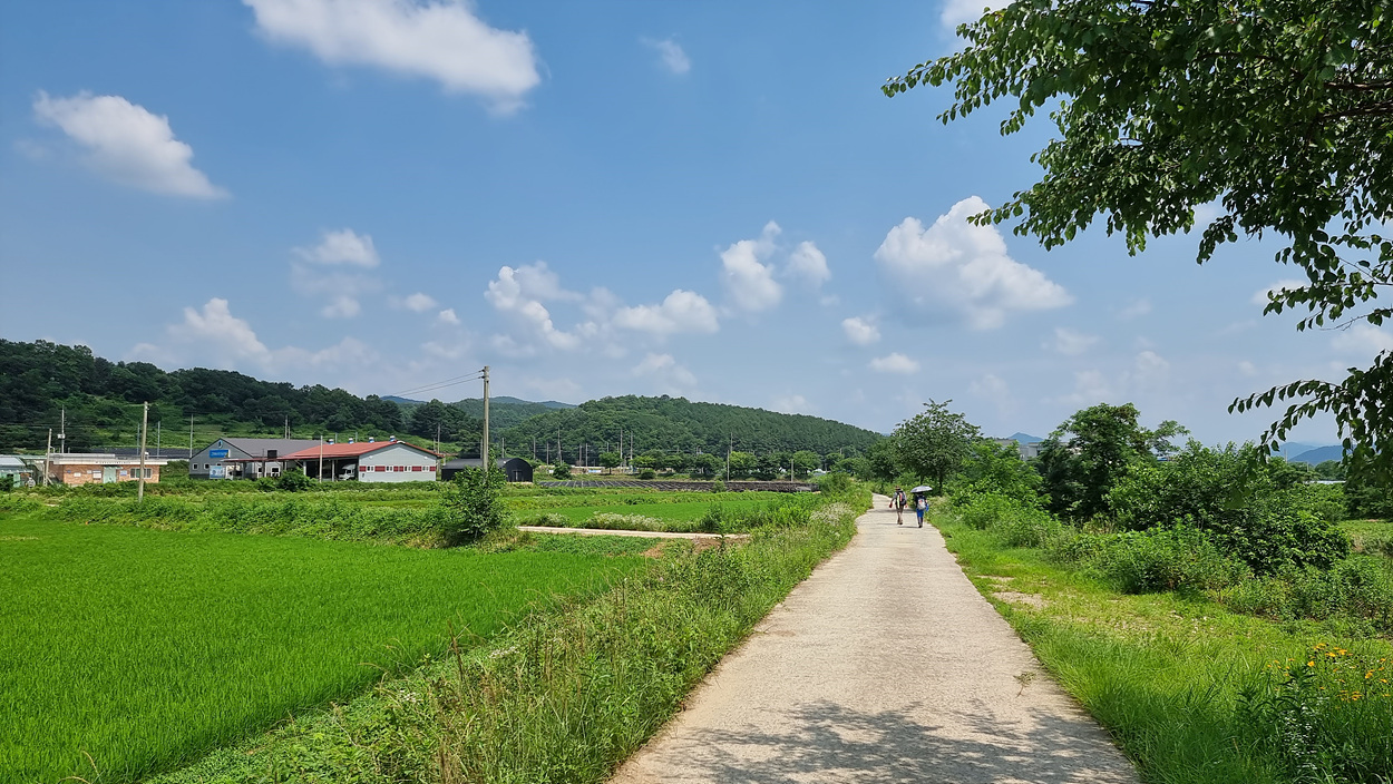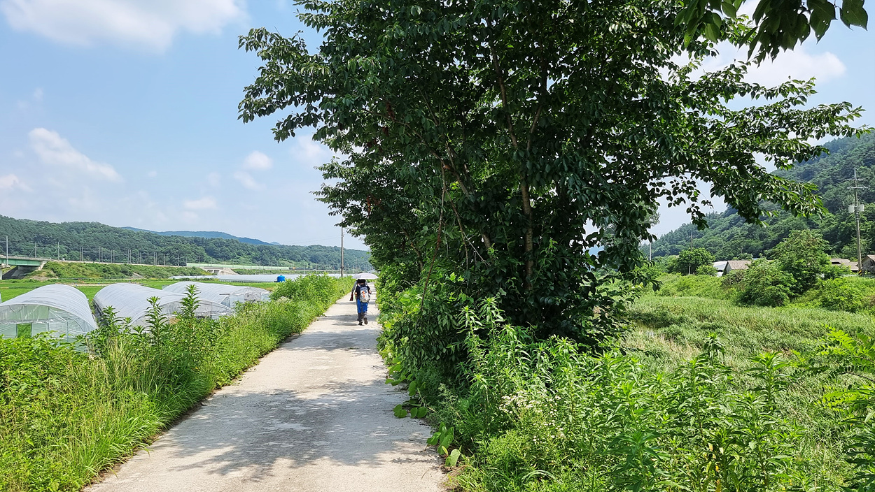 학둔지아래길을 따라 양동면사무소 방향으로 간다,