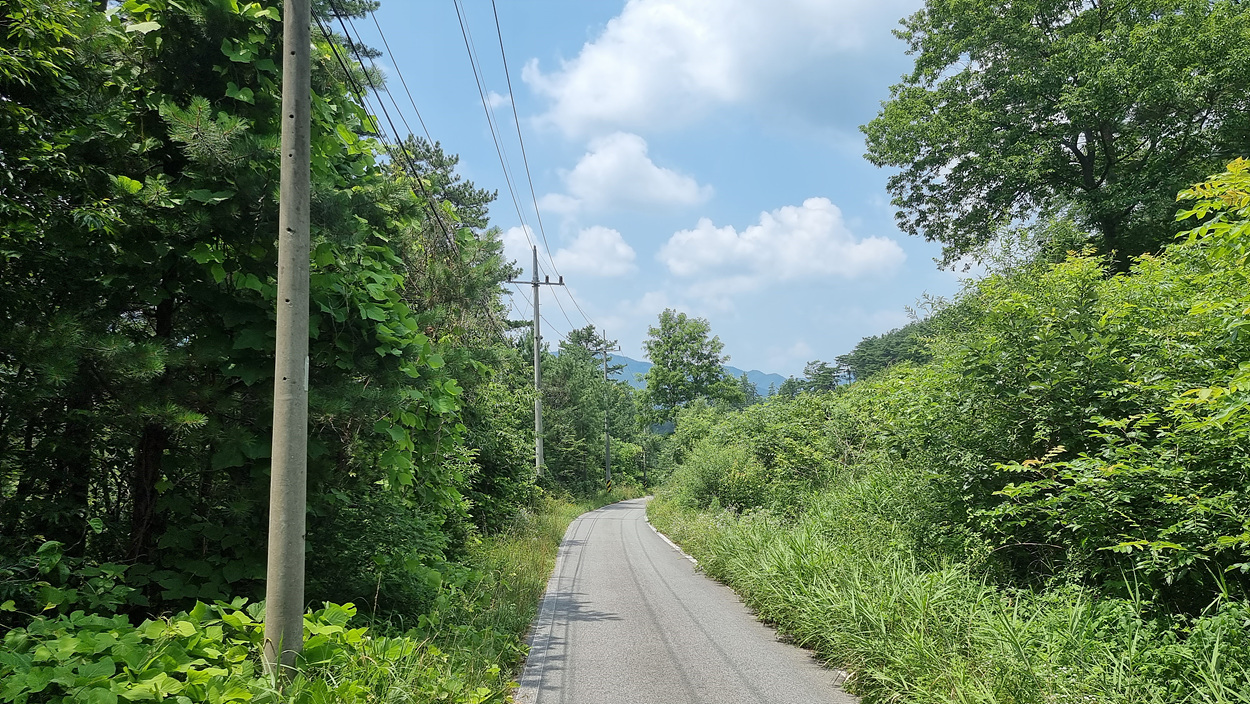 갈림길 전신주 이정표가 알려주는대로 왼쪽으로 간다,