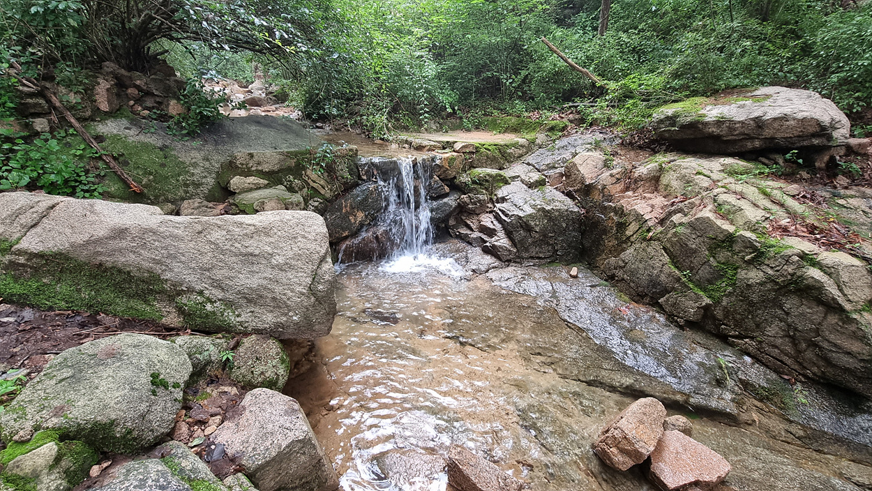구기터널계곡에서 흘러내리는 작은 폭포도 있다,