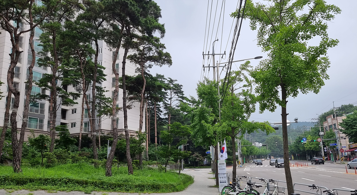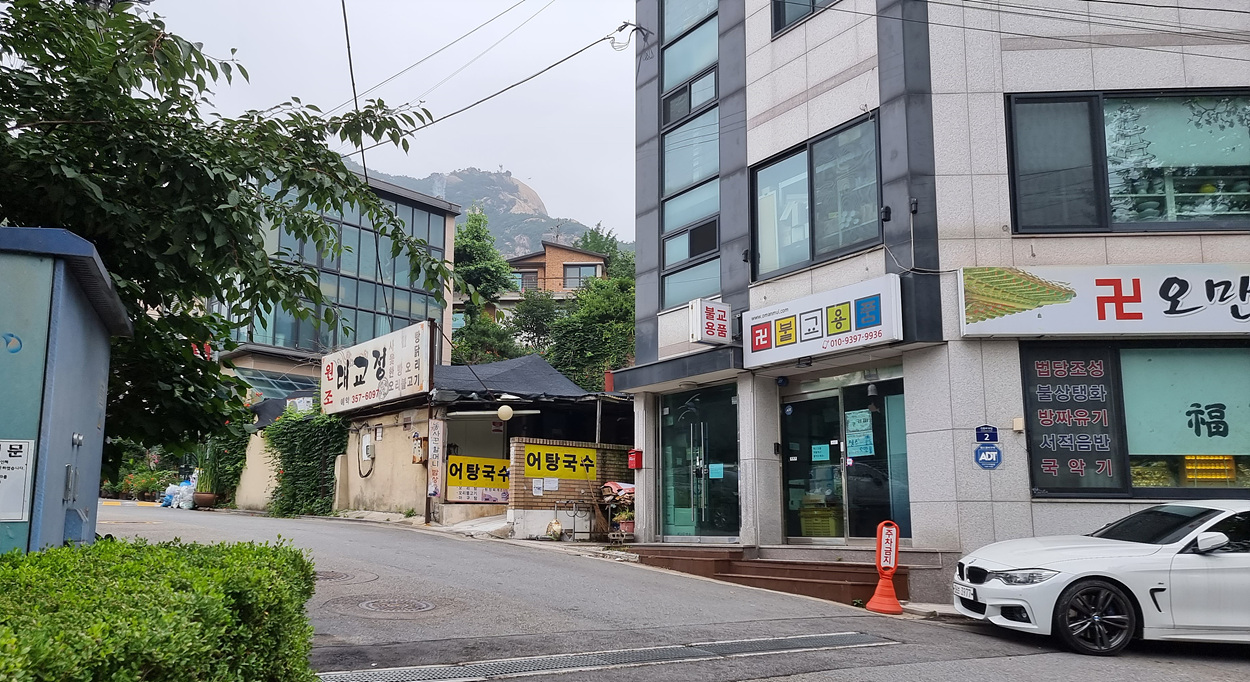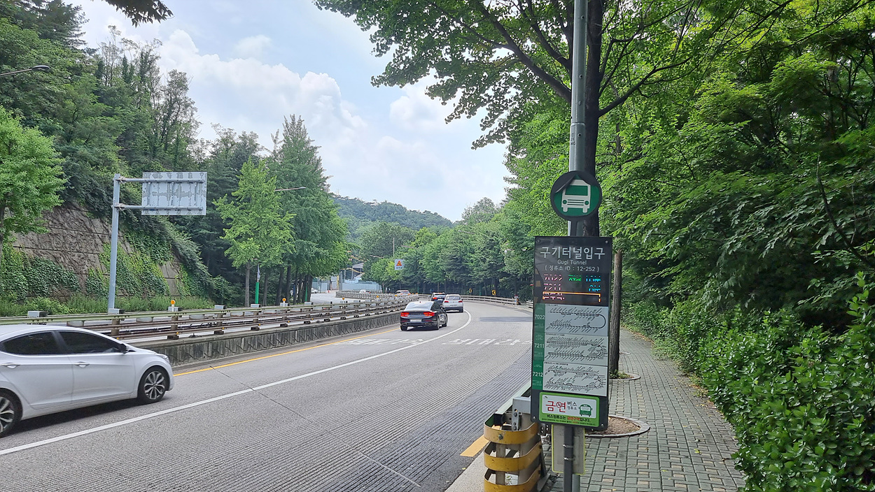 2번출구에서 왼쪽 구기터널 방향으로 올라간다,
