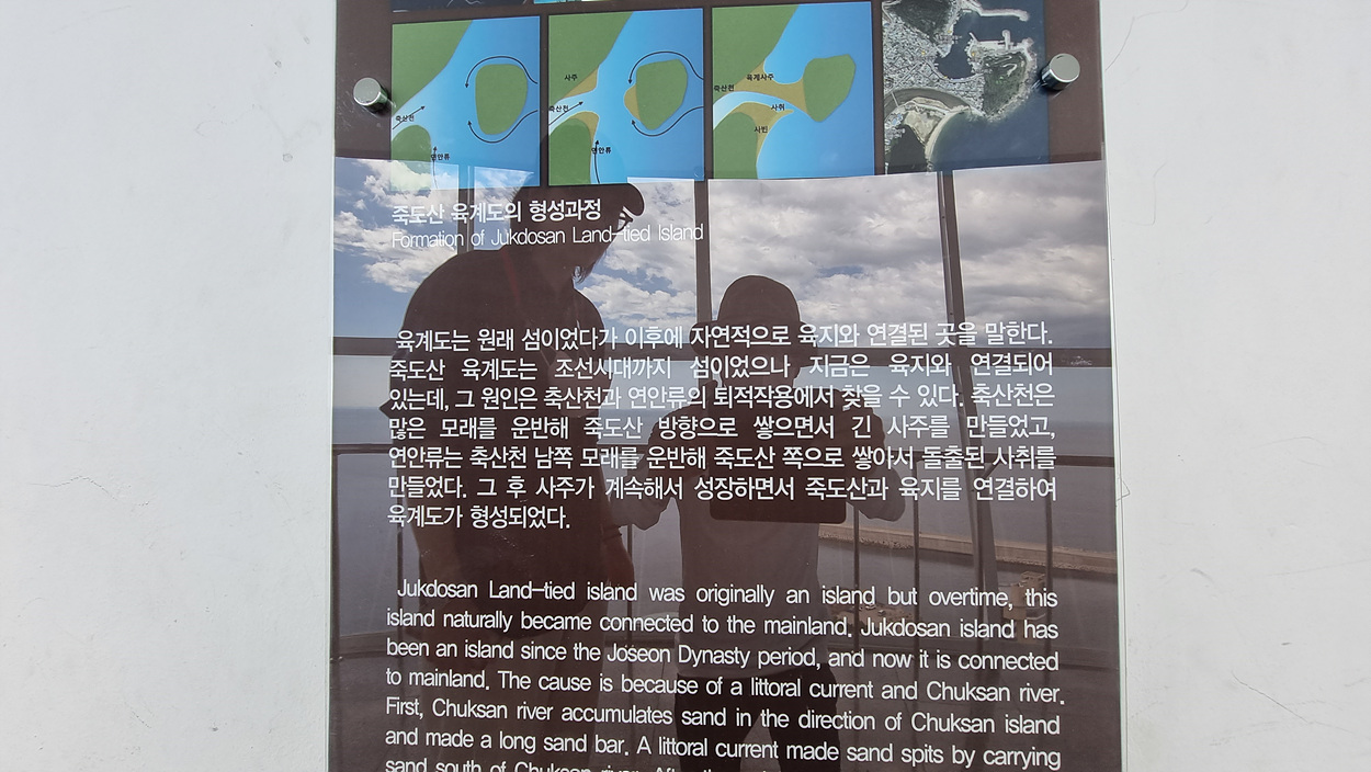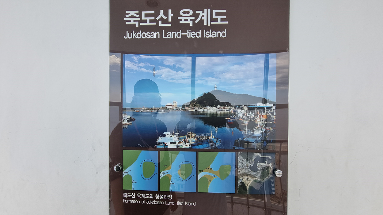 육지를 연결하여 육계도가 형성되였다, 라고 안내되여 있다,