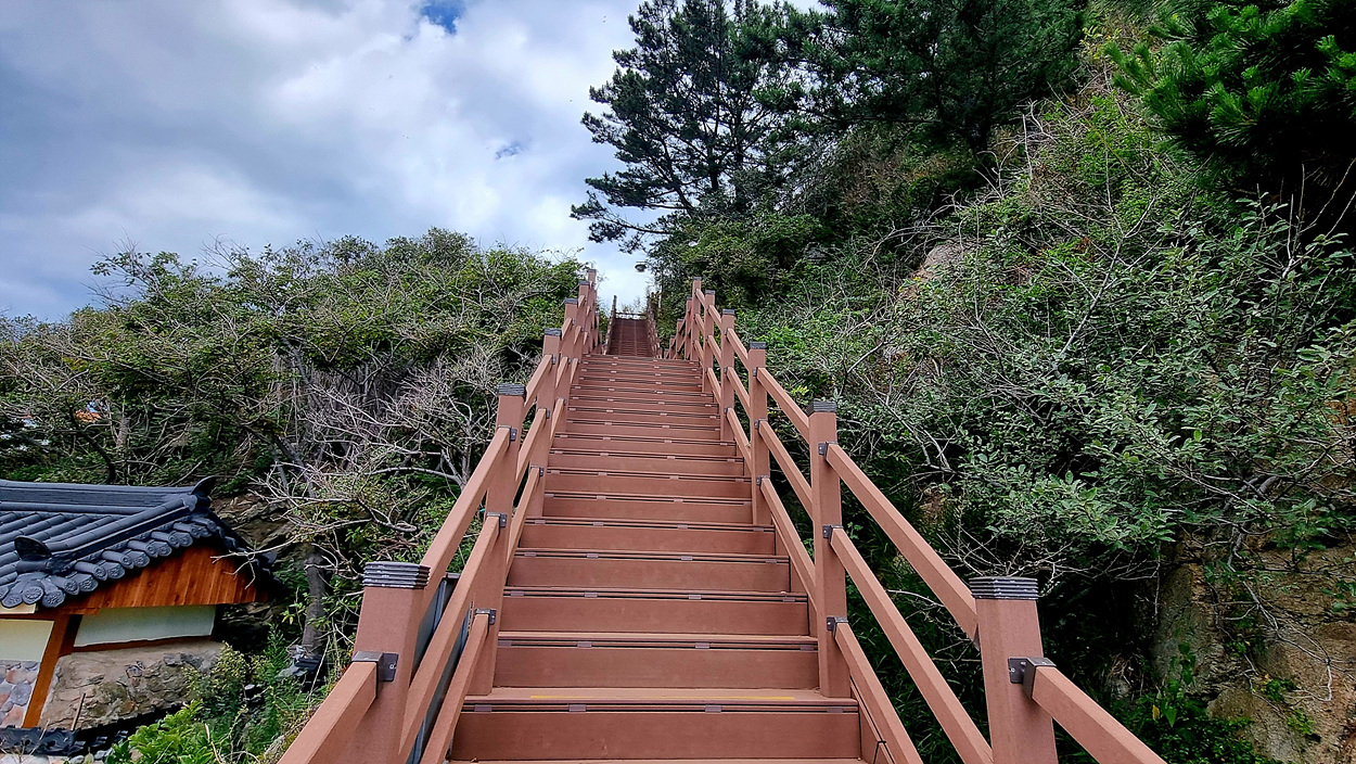 데크계단은 한계단씩 오르 내릴때 마다 동해와 축산항의