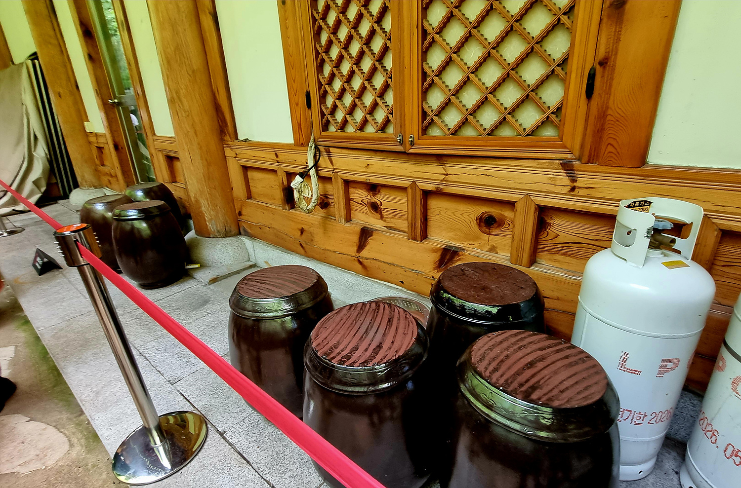 본채 앞 사각 나무 판자로 막아 놓고