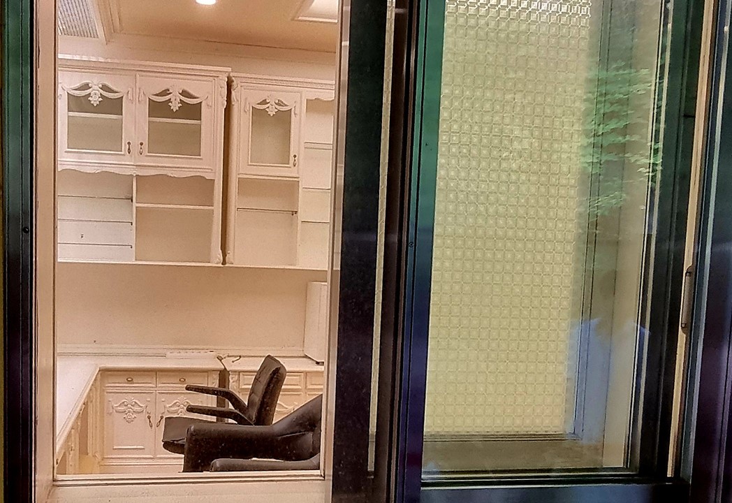 관저를 나가는 문에 걸려있는 청와대 휘장,
