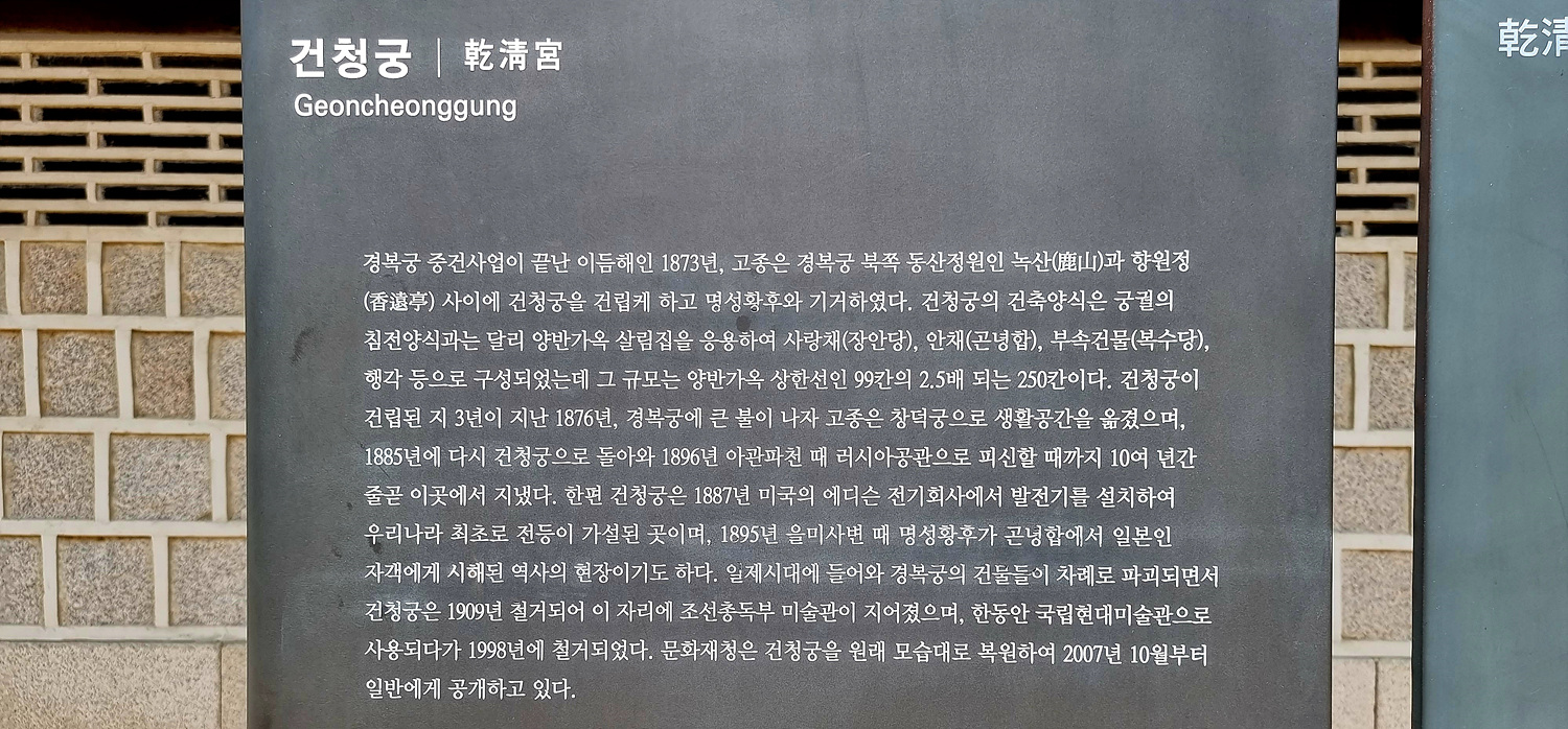 건청궁은 1909년에 철거되고 조선총독부 미술관이 지어졋어며, 그 후
