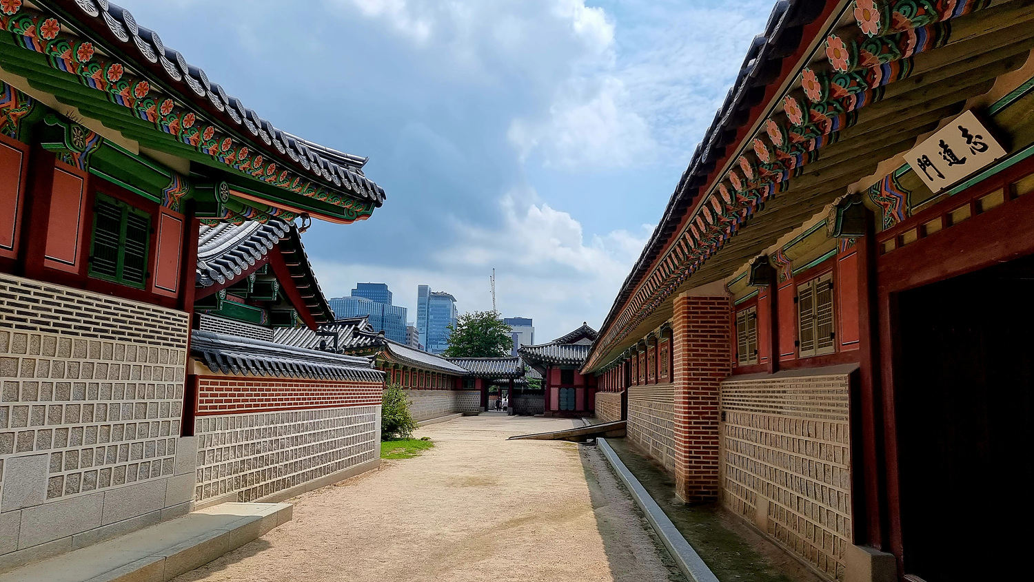 궐내에서 이국적인 지역을 형성하며 복도를 통해 하나의 내부로 연결된다,