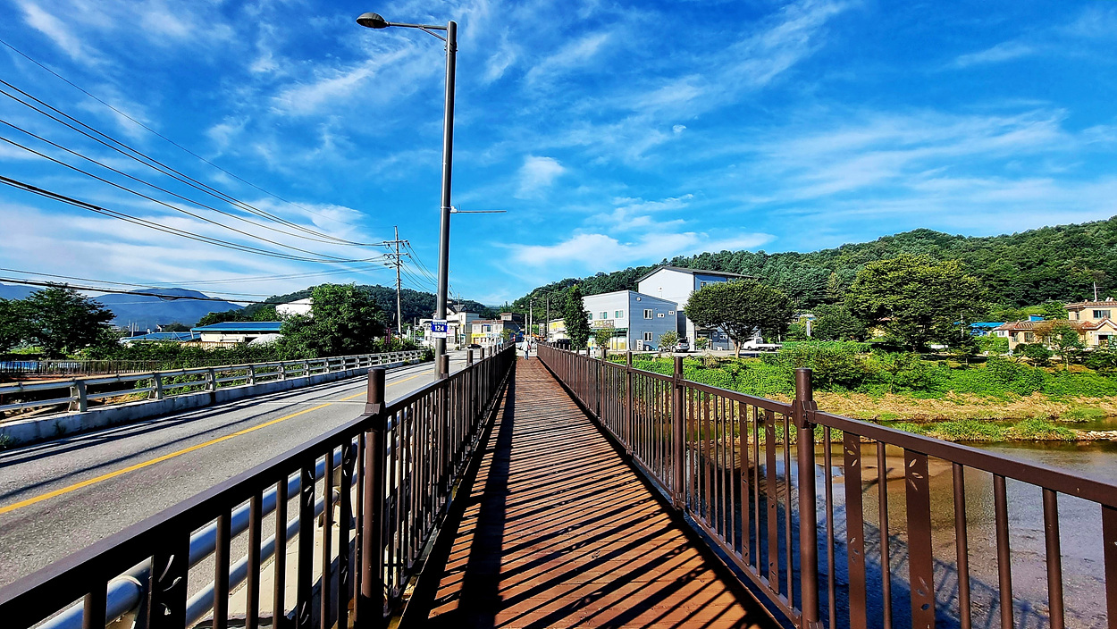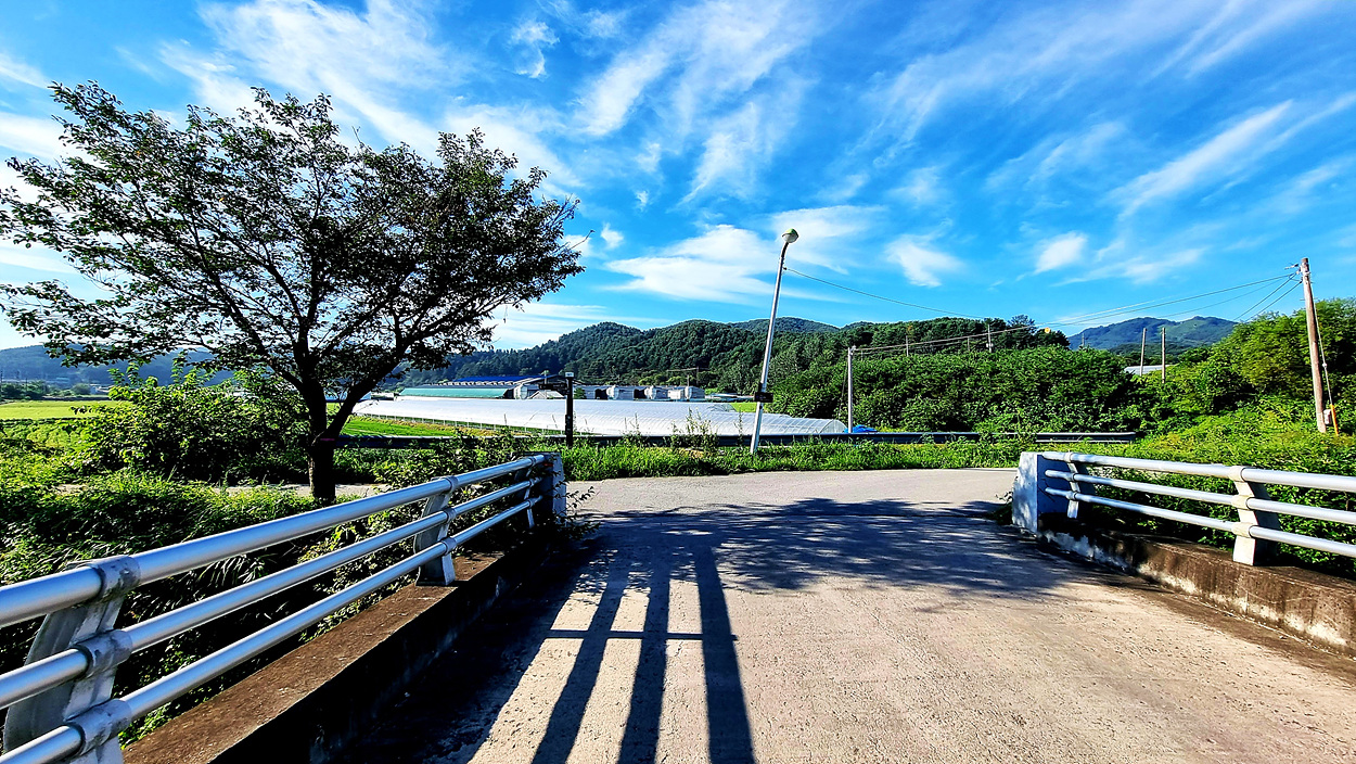 산산2리 경로당 옆, 작은 개천을 건너가는 다리도 있는데