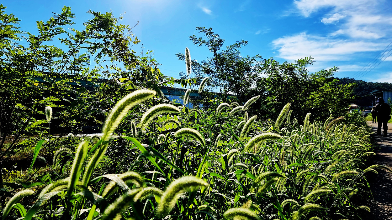 이 길에는 강아지풀이 지천으로 피여 있다,