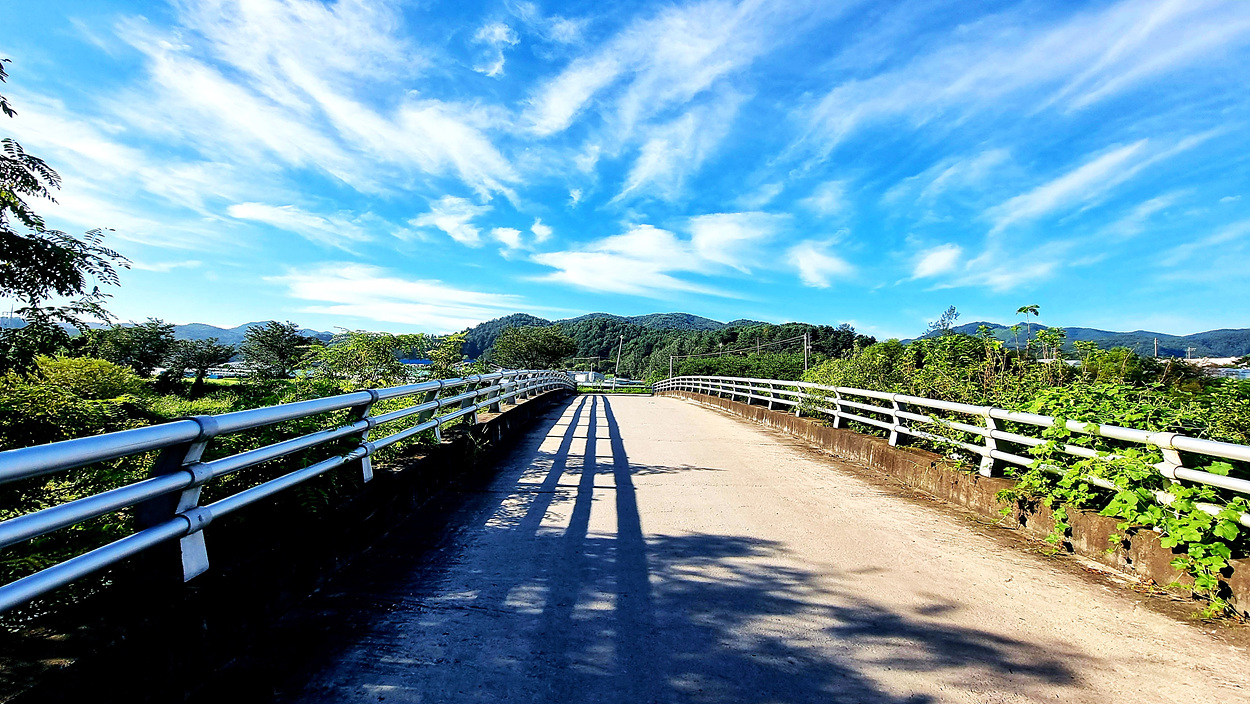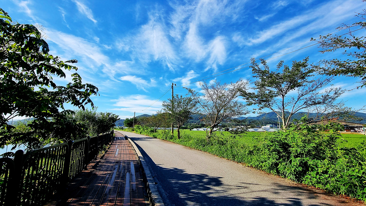 다리를 건너와 보이는 삼산리 일대 넓은 들녁