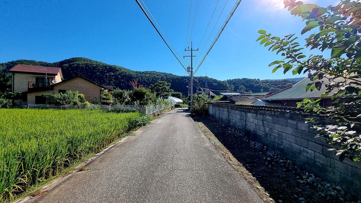여기서 경기옛길은 삼산2리 마을길로 들어간다,