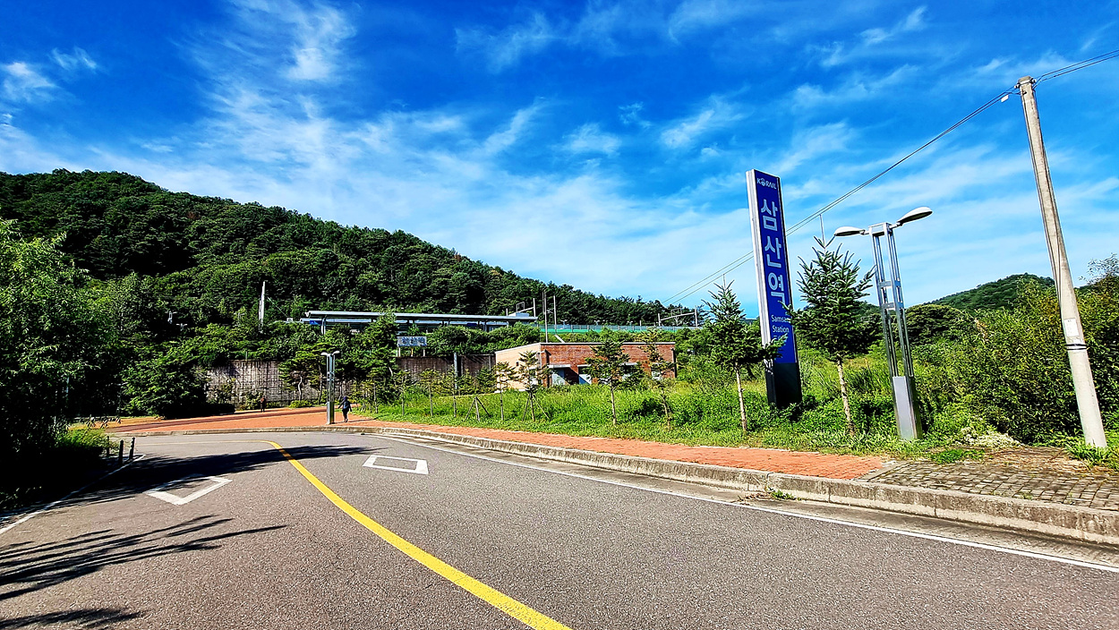 삼산역(Samsan station, 三山驛)은 양동면 삼산리에 있는 중앙선역으로 역무원이 없는 역으로 신역이다, 잠시 바닥면에 있는 역 화장실에 들렸더니 청소도 깨끗하게 되여 있고, 사용중 문제가 있어면 양동역으로 연락을 하라는 메모도 붙어있다, 삼산역앞 이천교 건너에 있는, 구 역사인 판대역(삼산역)도 철거하지 않고 그대로다,
