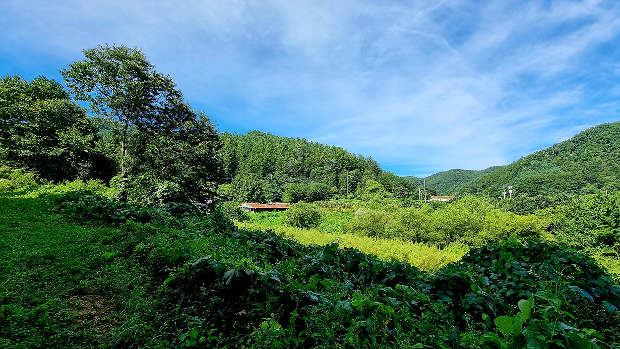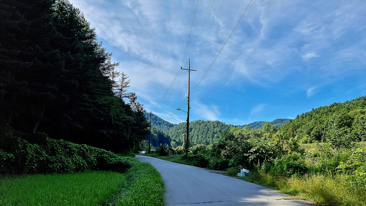 농가 주택으로 들어가는 위 포장길은 아니고, 아래 풀 밭 처럼 보이는 길로 들어가면