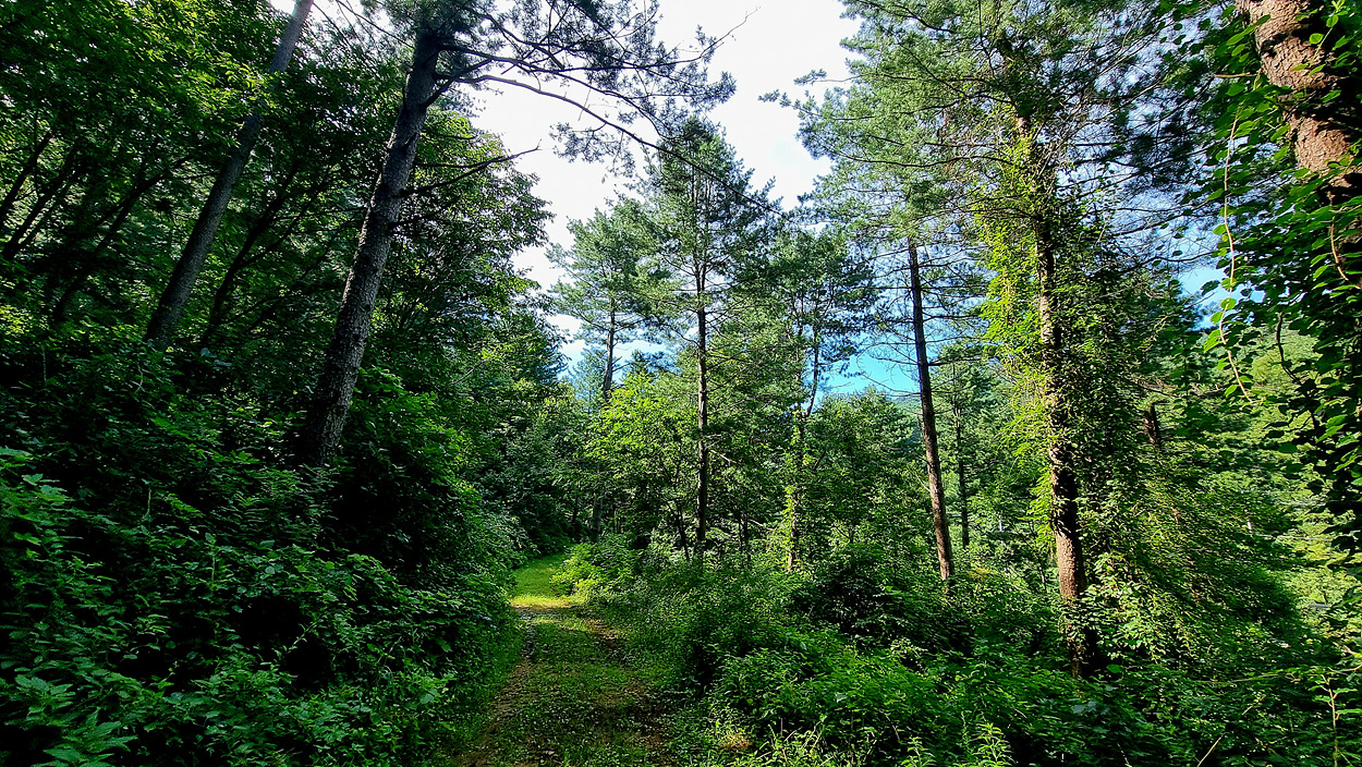 녹색의 숲으로 이루어진 당산 자락 임도는