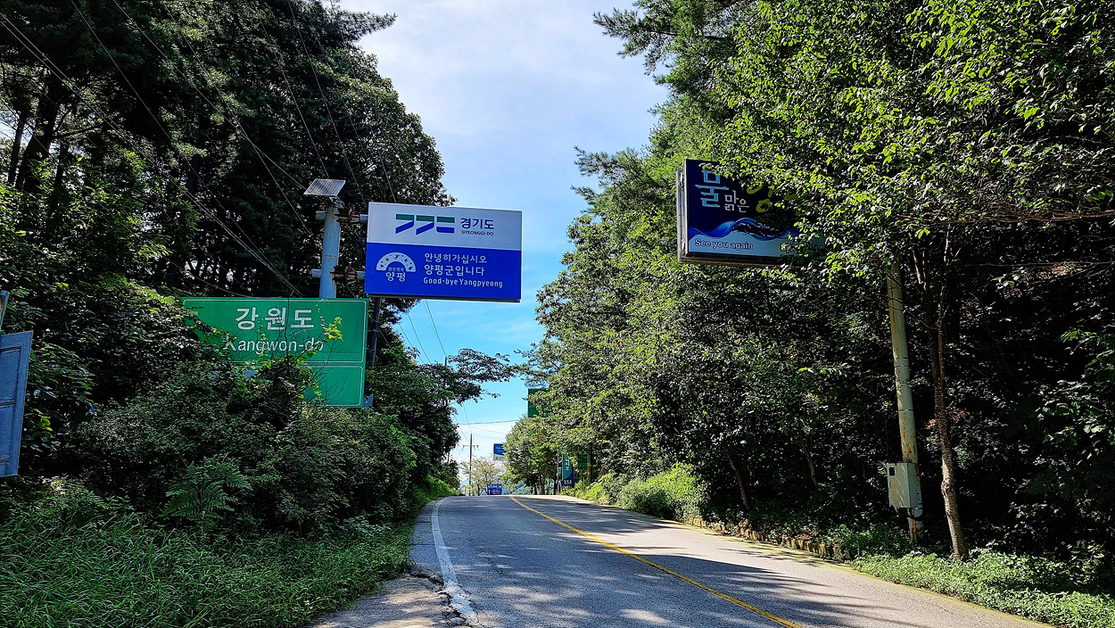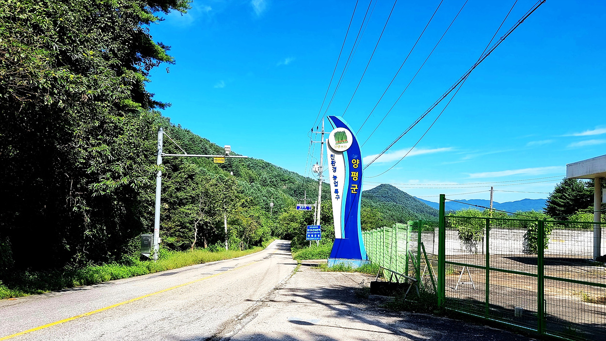 친화경농업특구 양평군경계 안내탑도 보인다,