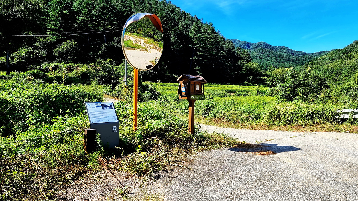작은 삼거리인 이곳에 10코스 솔치길 스템프 함이 있다,