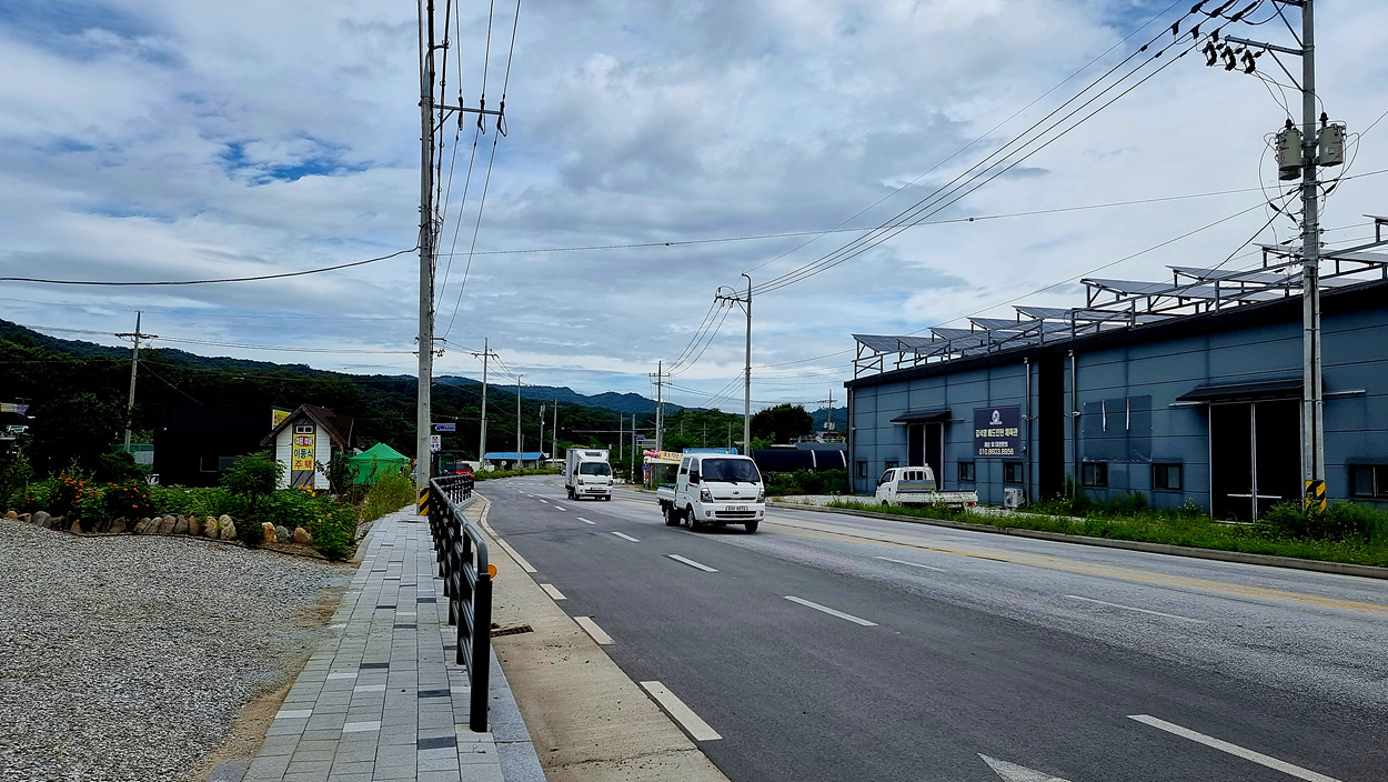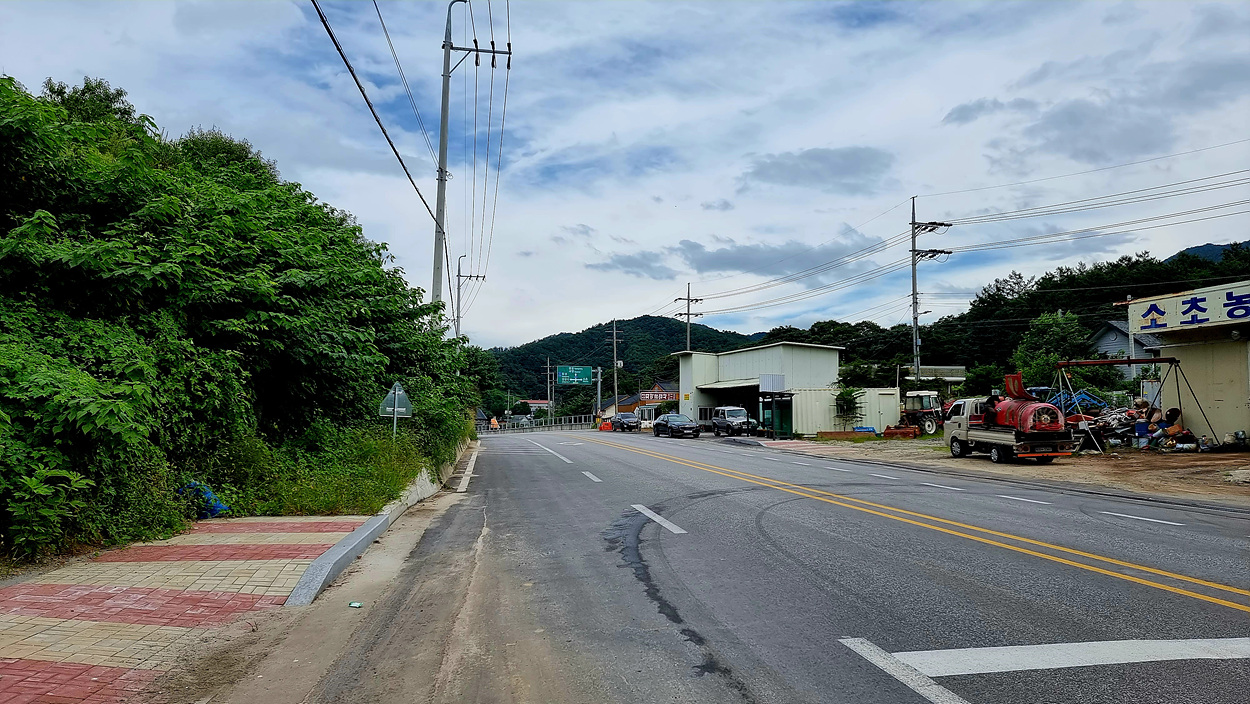 원주에서 소초면 까지는 역주행 방향으로 걸어야 인도도 있고 도로 폭도 조금 넓다,
