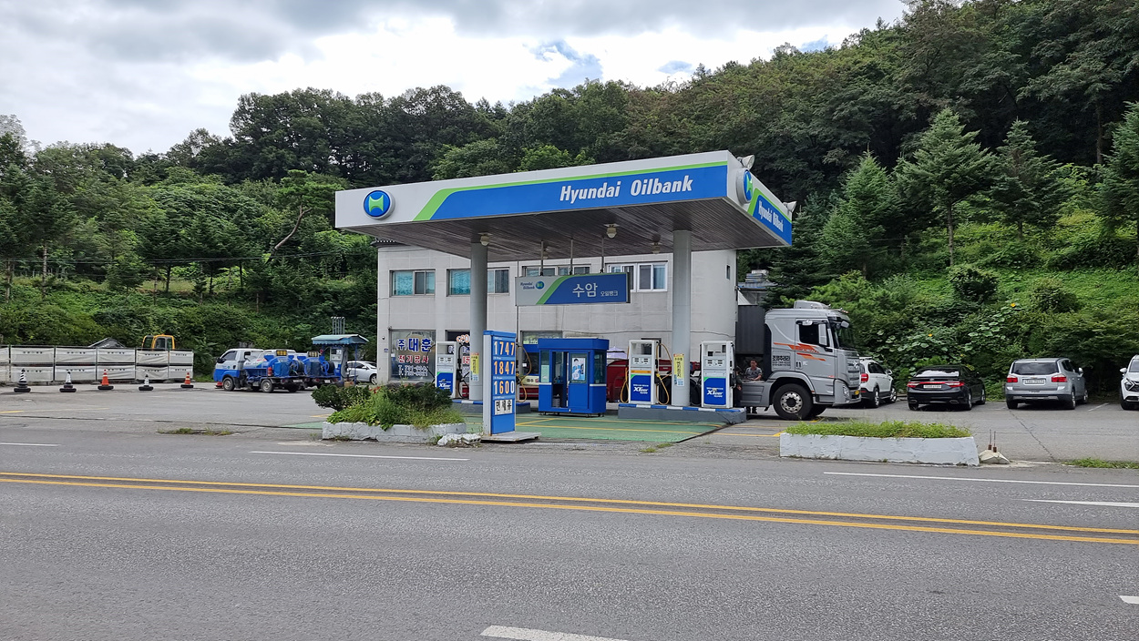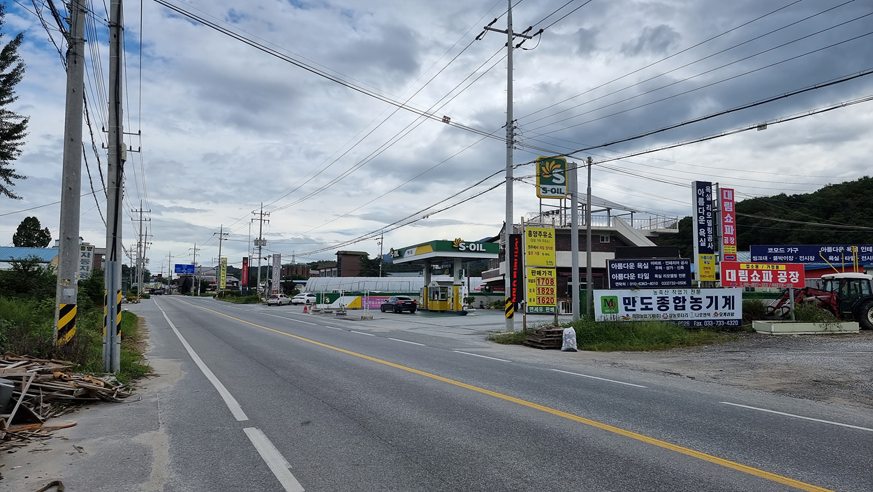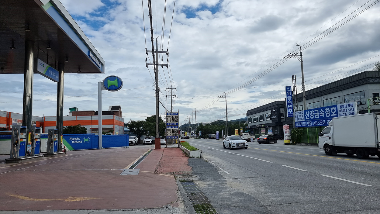 길 건너에는 작은 주유소도 있는길