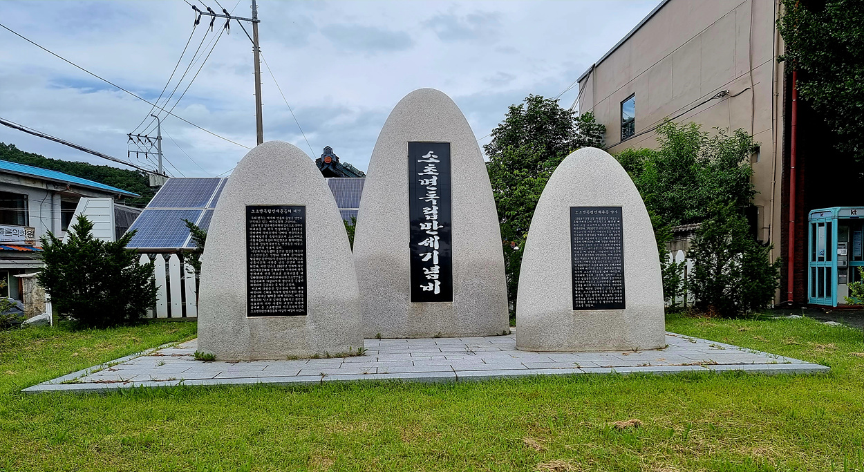 면사무소 입구에 소초면 독립만세기념비가 있다,