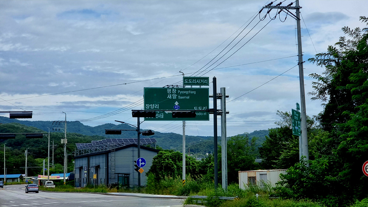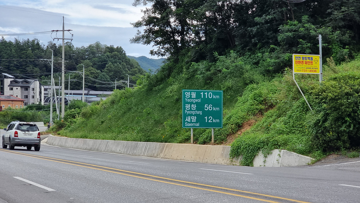 여기는 영월 110km 평창 56km 이정표도 있다,