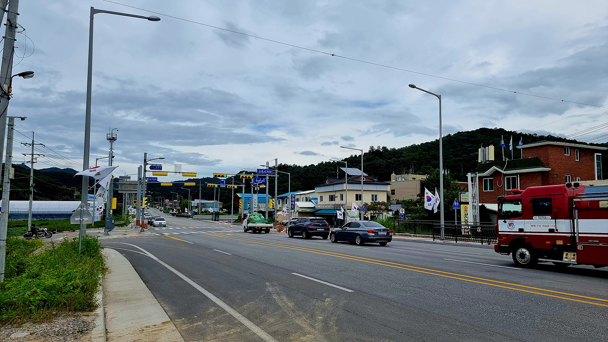 소초사거리 전경이다, 소초면이라는 이름은 흥양리에 있는 쇠새바우(소새바우)에서