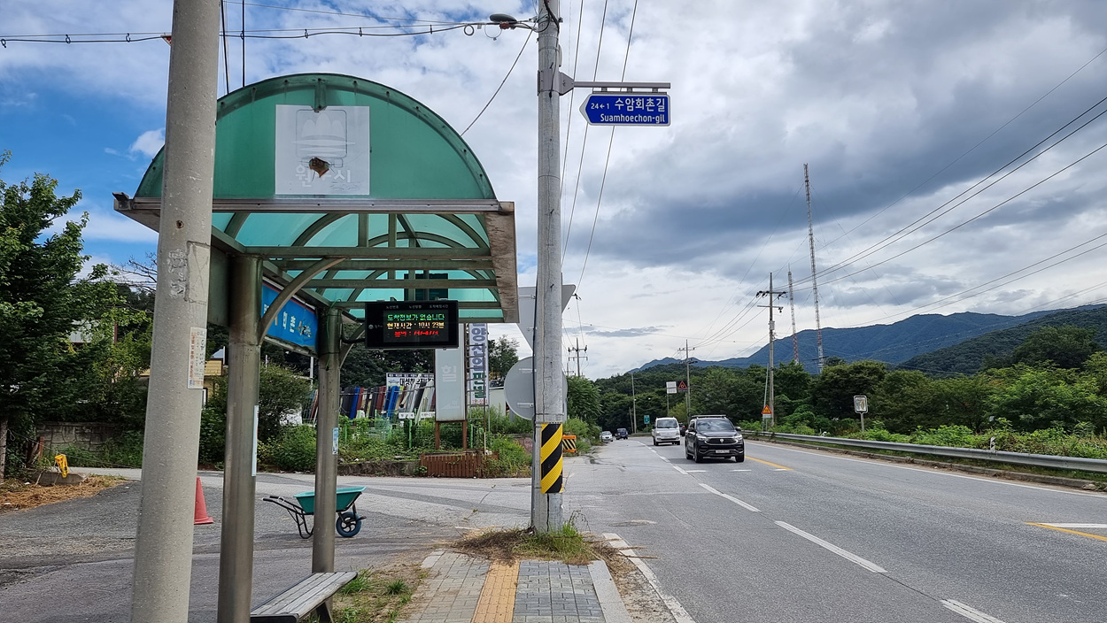 여기는 버스 도착 시간을 알려주는 전광판이 없다,