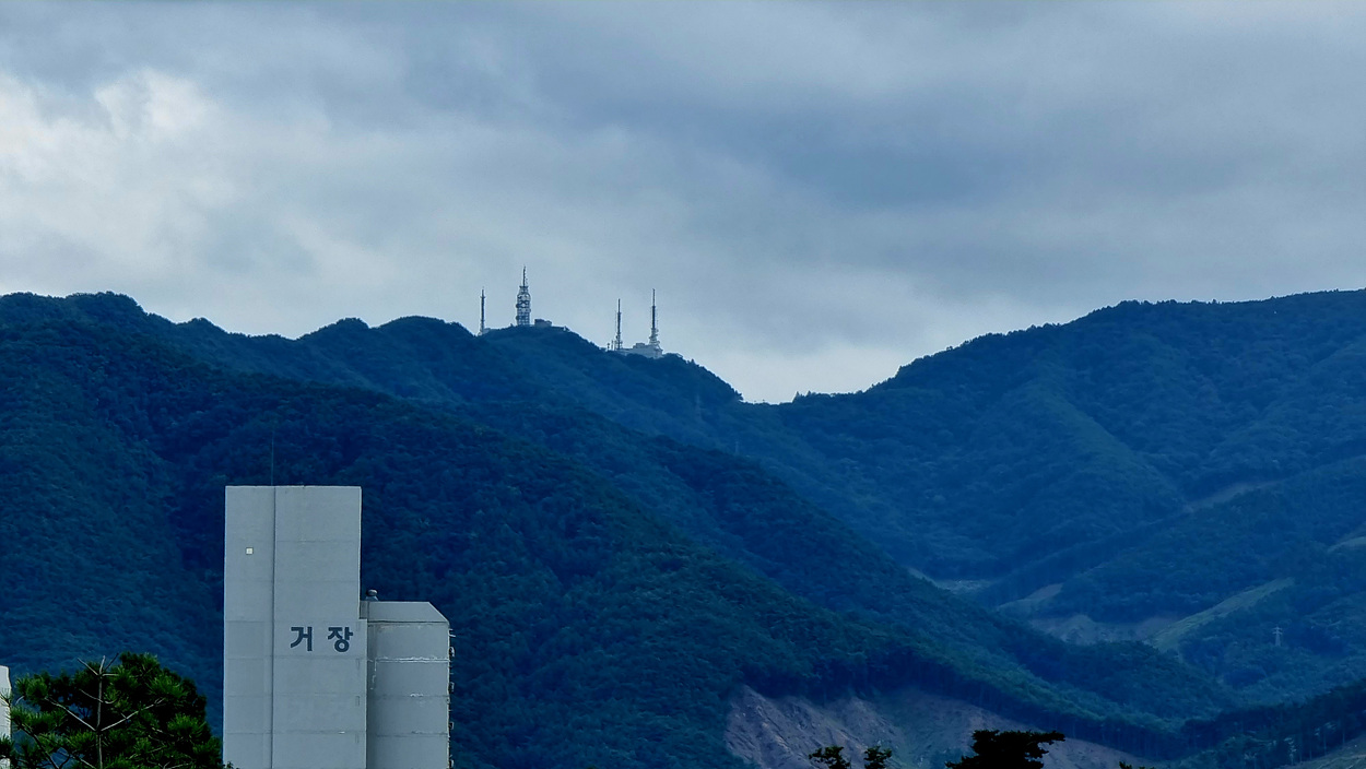 안테나가 보이는 저곳이 치악산 정상이다, 하루 종일 치악로를 따라 걸어 여기까지왔다,