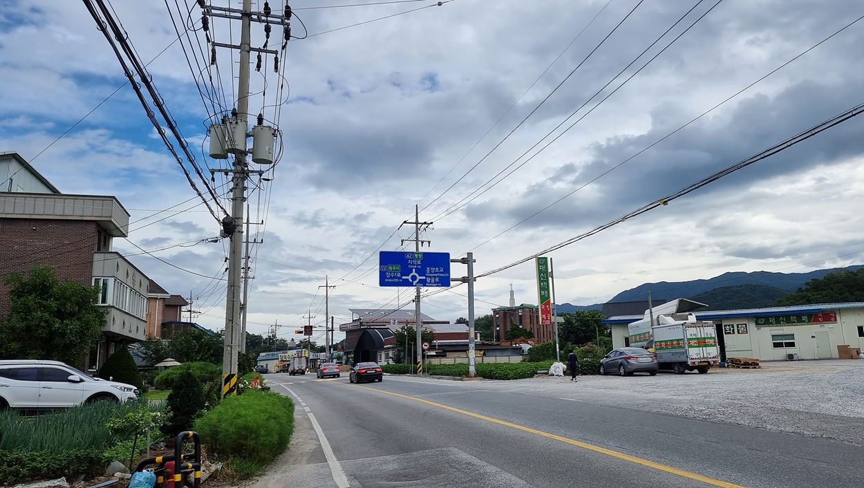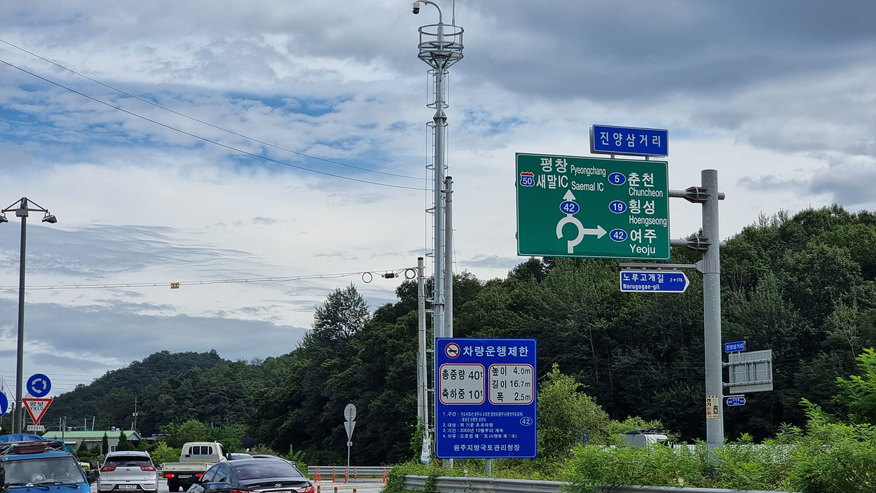 진양삼거리에서 직진은 평창이고
