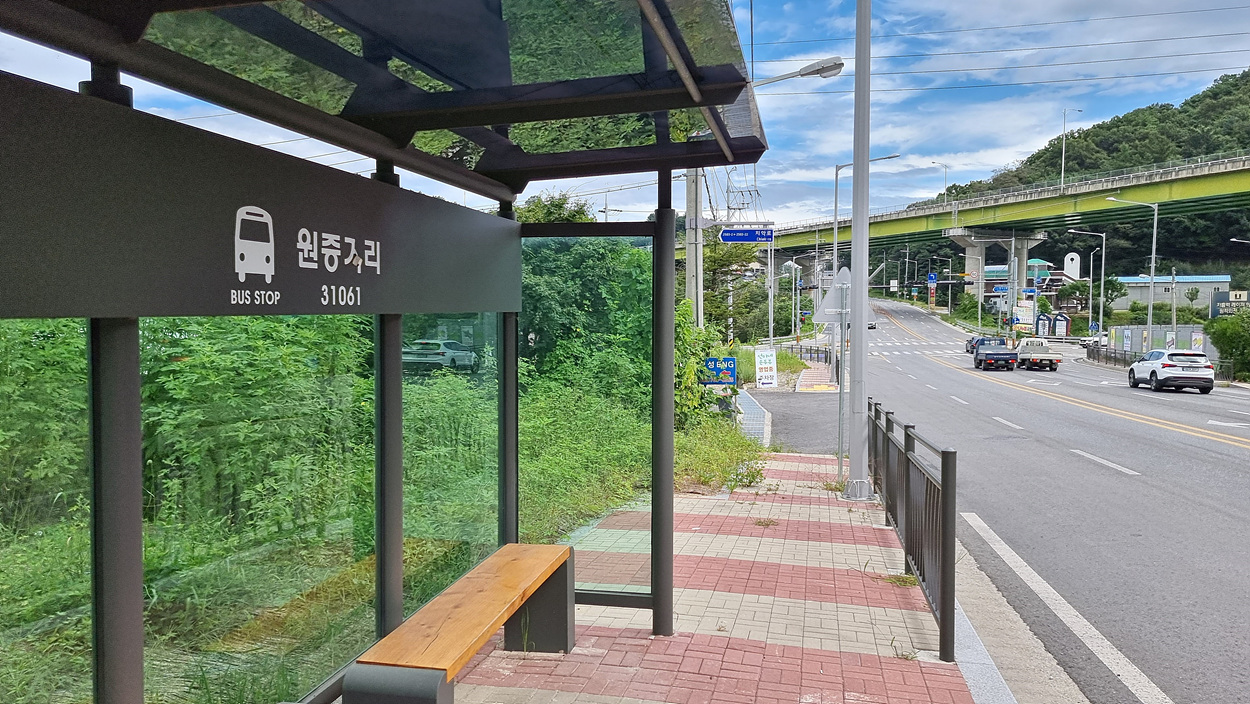 원증거리 사거리에 있는 이곳 버스정류장은 원증거리 정류장이다,