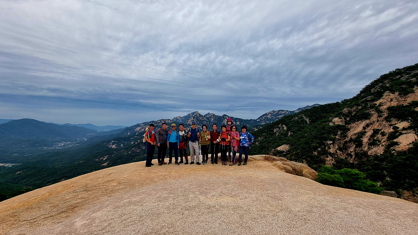 백운대 방향을 배경으로 2022년 10월 2일 날의 기념사진도 한장도 남긴다,